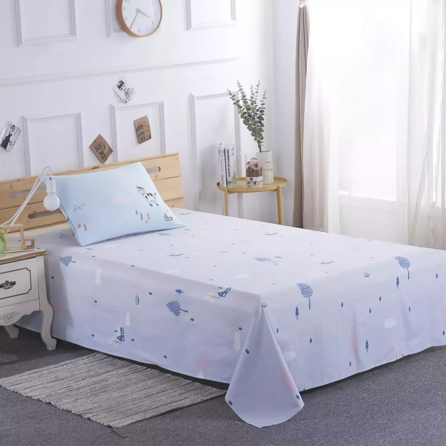 В комплекте простыня 160x230 из однотонного египетского хлопка, которую мы предлагаем сделать на резинке под индивидуальные параметры вашего матраса с учётом высоты (стоимость рассчитывается исходя из размеров спального места).