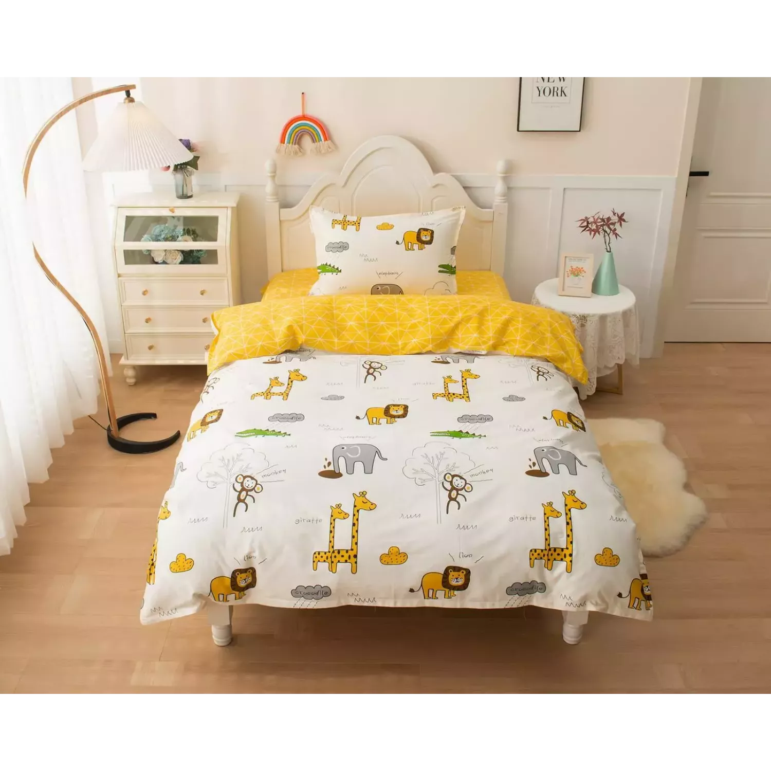 Материал комплекта не вызывает аллергии, выдерживает многочисленные стирки и отличается хорошими “дышащими” свойствами, что обеспечит вашему ребёнку комфортный сон.