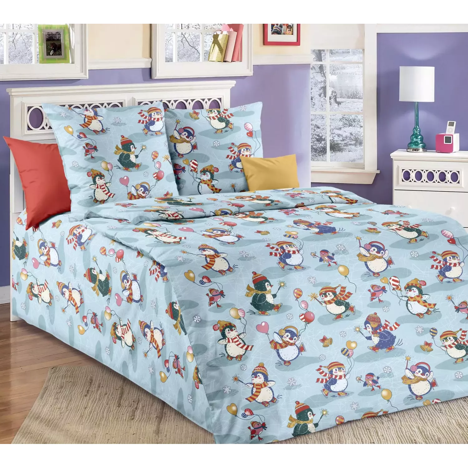 Стильное и яркое постельное белье Бамбино “Пингви” от российской компании Текс-Дизайн изготавливается из натуральной хлопковой ткани перкаль, которая похожа на бязь, но нить используется тоньше и более частого переплетения, что придает мягкости и плотности, долговечности изделию. Качественный фабричный пошив и приятная на ощупь ткань это идеальное соотношение цены и качества.