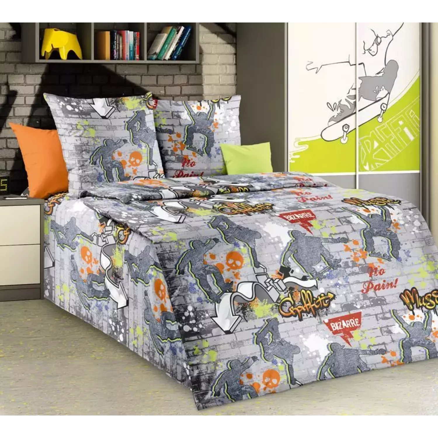 Стильное и яркое постельное белье Бамбино “Стрит-арт” от российской компании Текс-Дизайн изготавливается из натуральной хлопковой ткани перкаль, которая похожа на бязь, но нить используется тоньше и более частого переплетения, что придает мягкости и плотности, долговечности изделию. Качественный фабричный пошив и приятная на ощупь ткань это идеальное соотношение цены и качества.