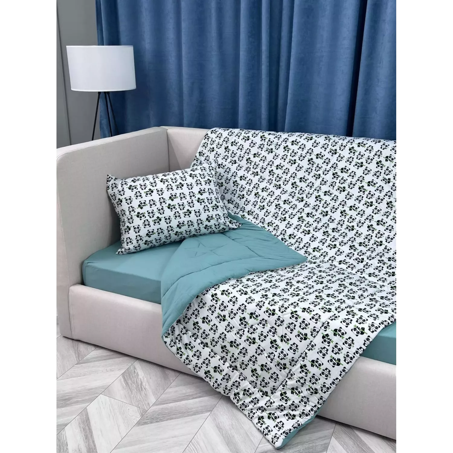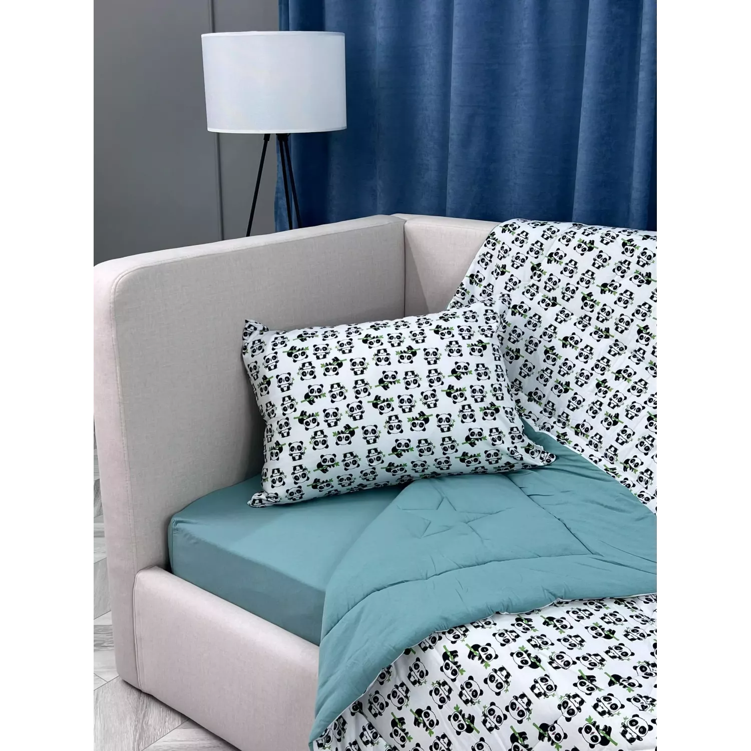 Комплект постельного белья из коллекции "Funny kids" от известной текстильной компании Sofi De Marko с всесезонным двусторонним одеялом, которое не надо вставлять в пододеяльник.