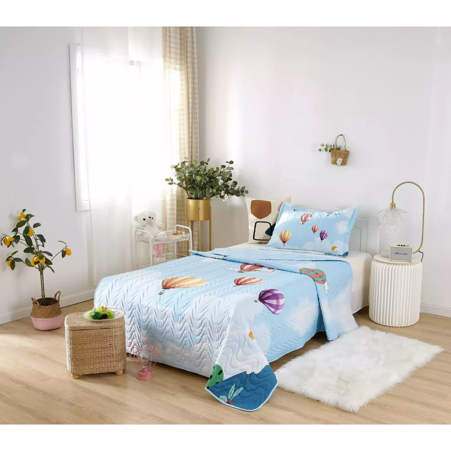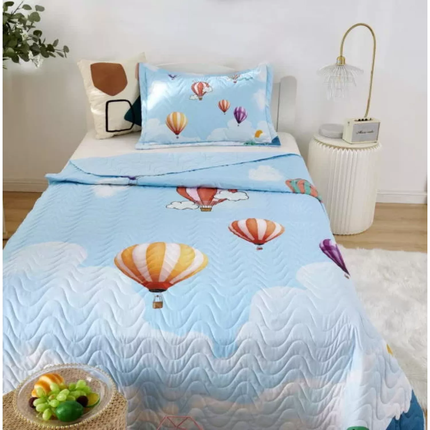 Детские покрывала — это особая забота об уюте и комфорте ребенка. Красивое, стеганое покрывало коллекции «Sunny day» придаст любой детской спальне яркую индивидуальность. Волнистые стежки делают изящные покрывала еще более выразительными и изящными. К ним в комплекте идут наволочки, у них есть интересная особенность, которая непременно понравится ребенку– небольшие ушки.