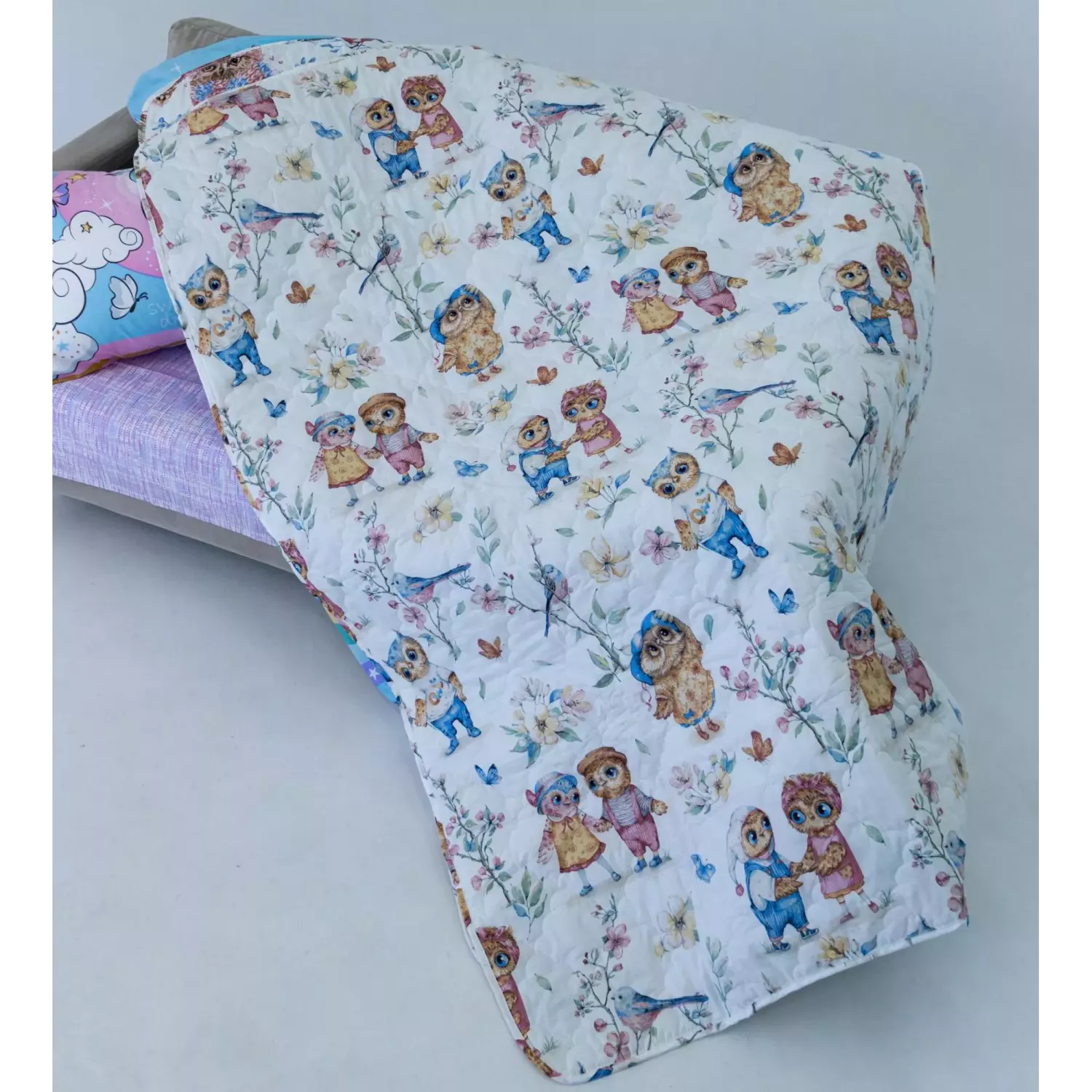 Стеганое покрывало из натуральной ткани "Birds song" от бренда Волшебная Ночь. Ткань из поплина приятная на ощупь и дышащая, так как она из 100% хлопка. Поэтому покрывалом можно укрываться. Такая ткань по плетению похожа на бязь, но нить используется тоньше и более частого переплетения, что при...
