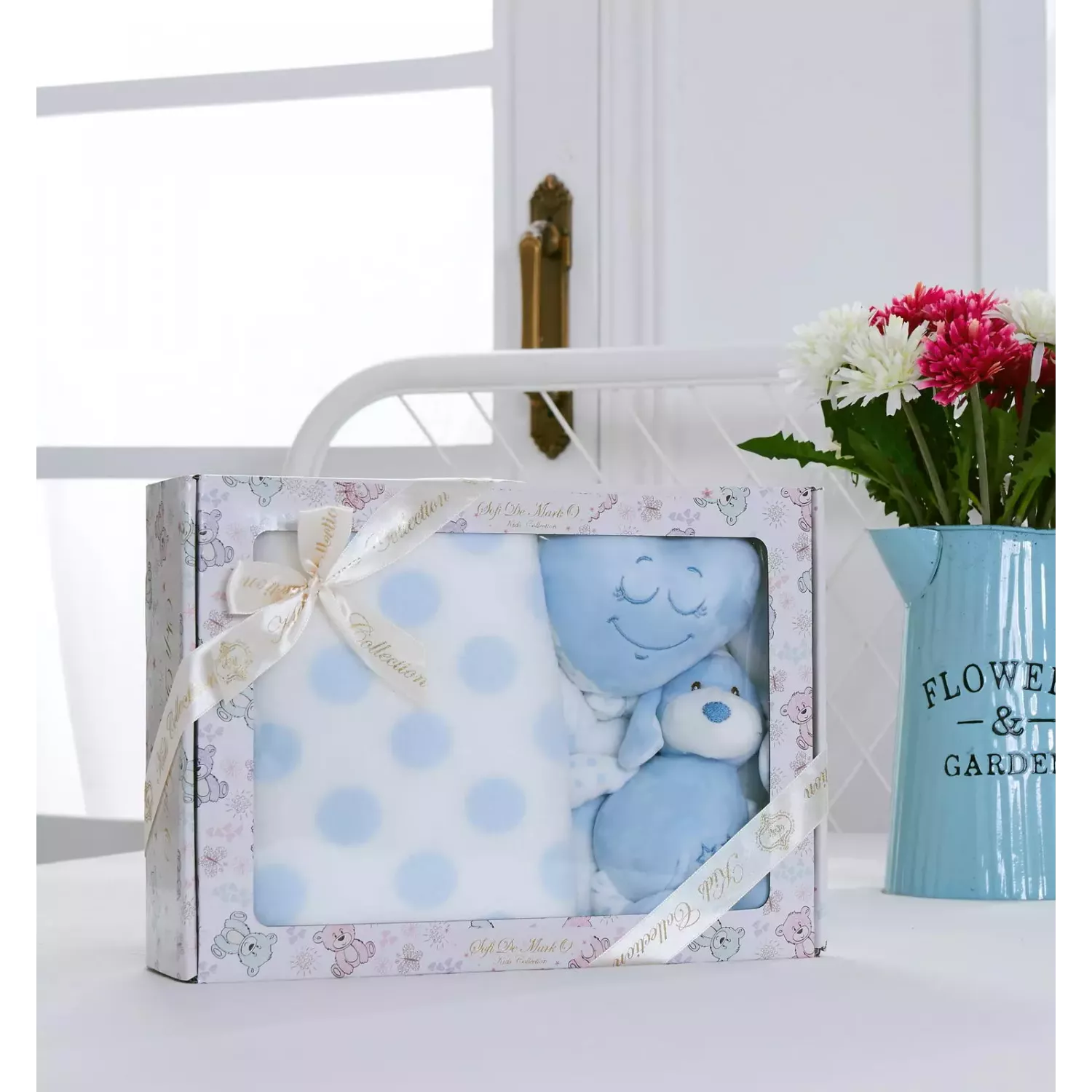 Детский двухсторонний плед в комплекте с мягкой игрушкой в подарочной упаковке Sofi de Marko “№2” (голубой). Очень нежный на ощупь, мягкий и шелковистый плед из велсофта подарит тепло и уют Вашему ребёнку. Изделия из велсофта износоустойчивые, легко стираются, быстро сохнут и на нем не образуются...