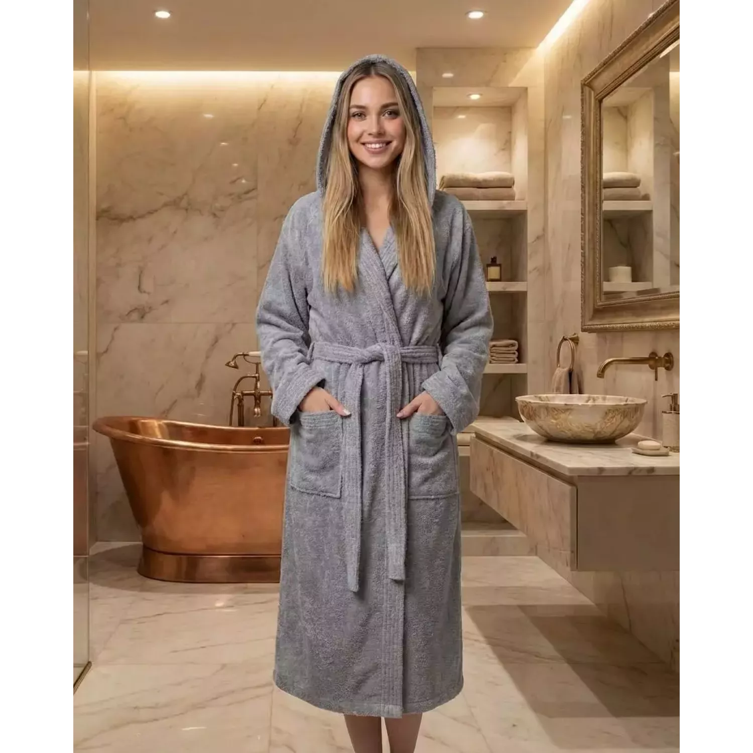 Премиальный махровый халат “Мабелла” от “Sofi de Marko” изготовлен из чистейшего 100% хлопка, что позволяет изделию прекрасно впитывать влагу и быстро сохнуть. Преимуществами данного халата являются: долговечность, практичность, термообработка ткани, которая не даёт при стирке усадку, сохраняя фо...