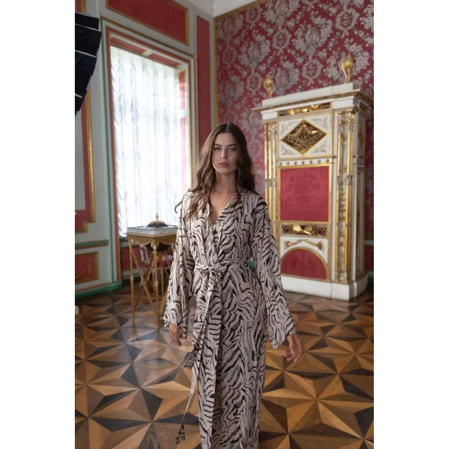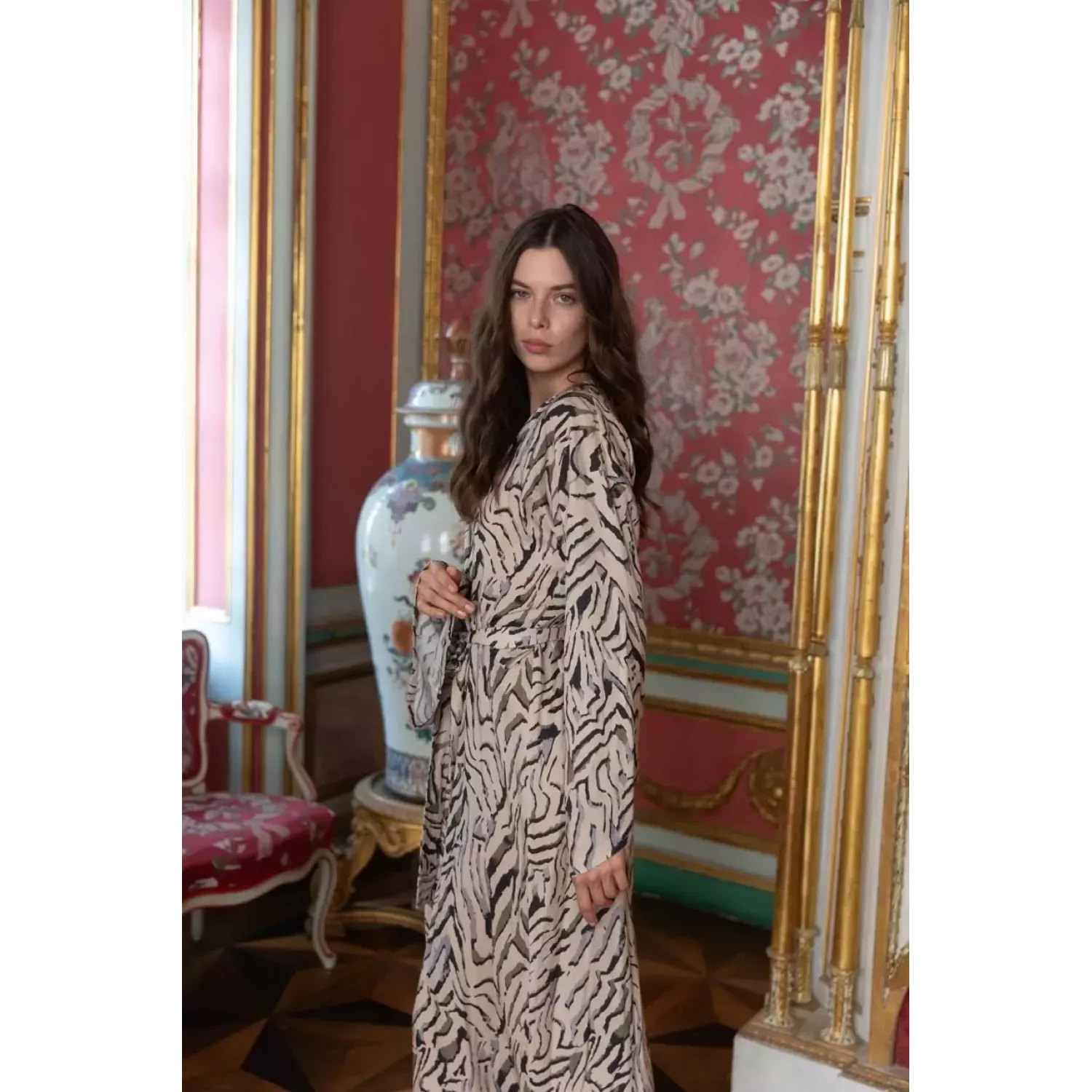 Халат выполнен из высококачественной вискозы, которая дарит коже мягкость и комфорт.