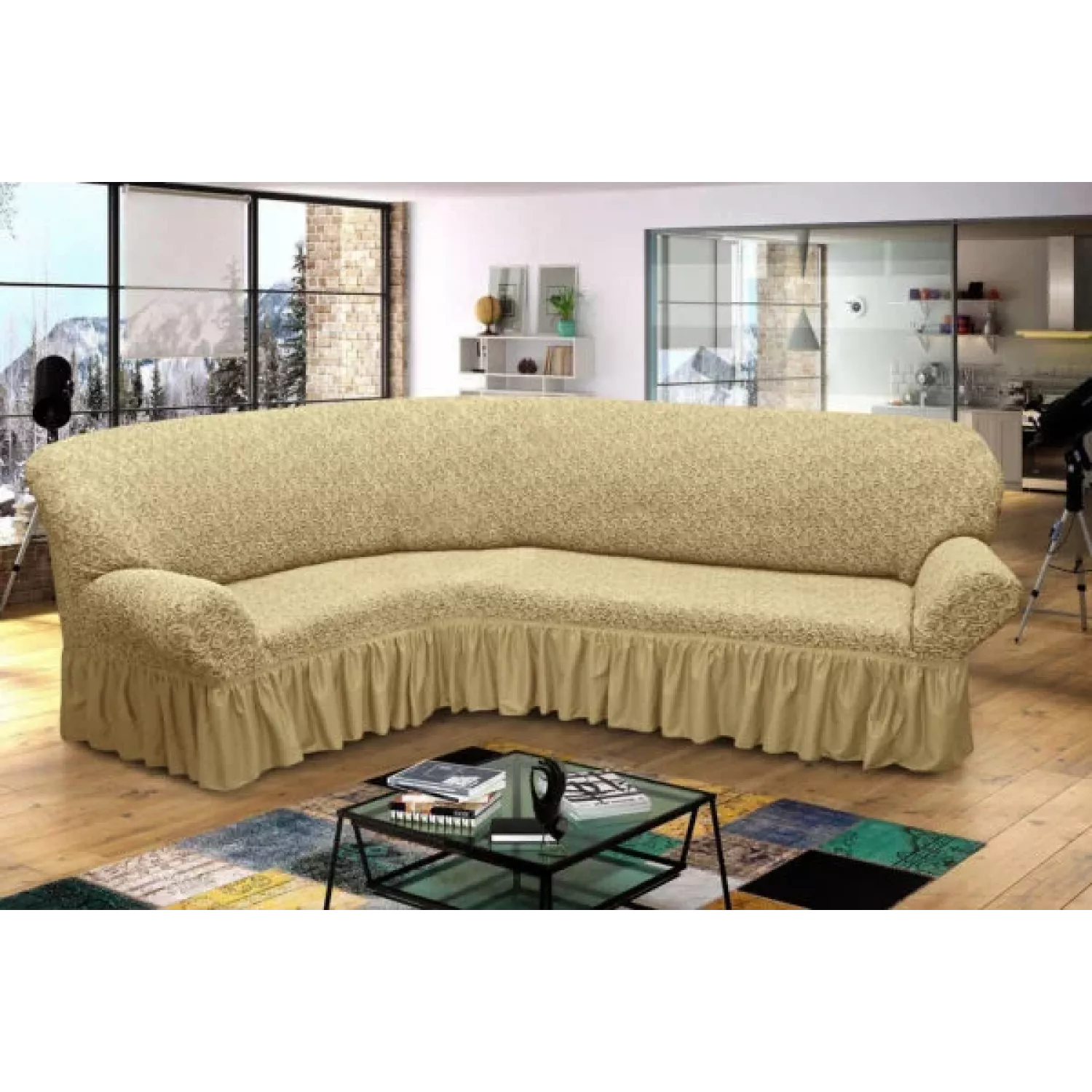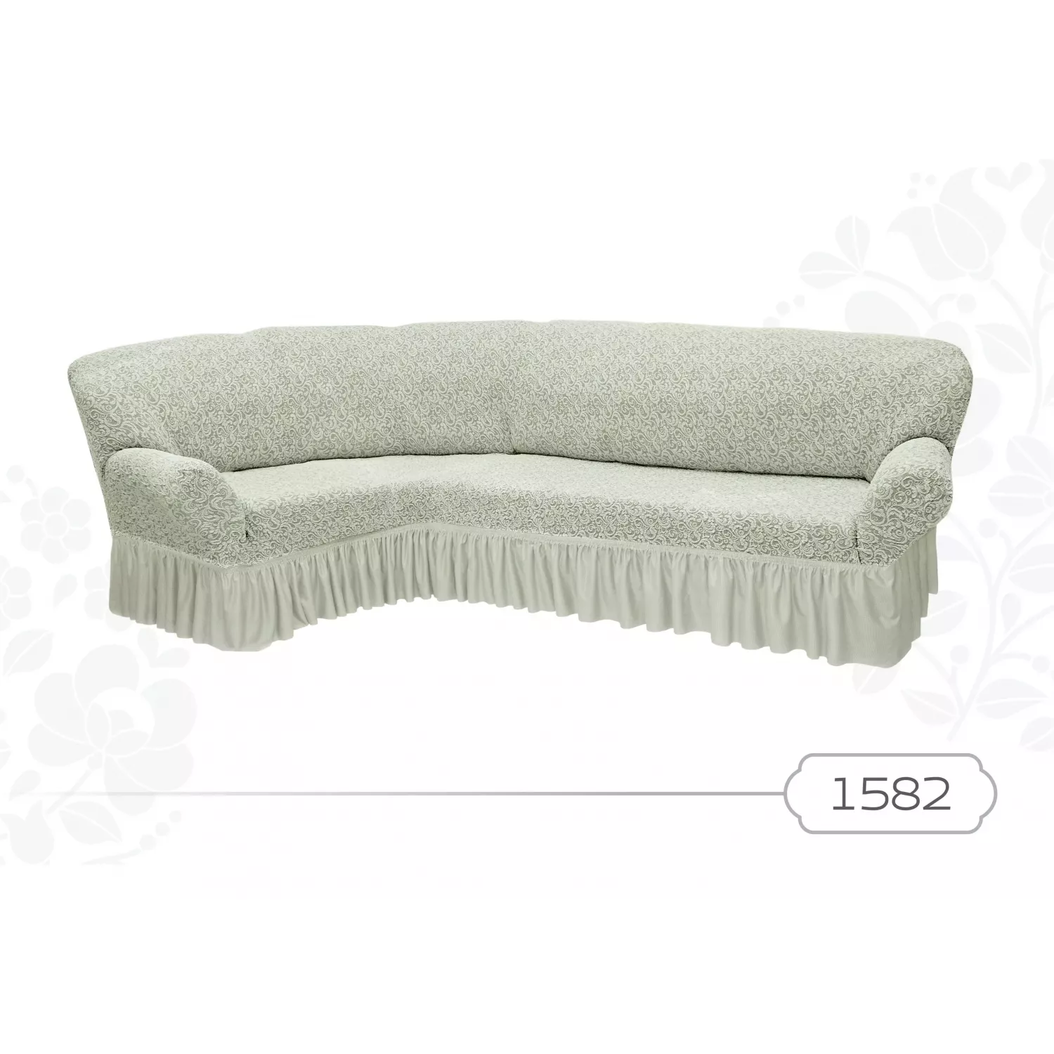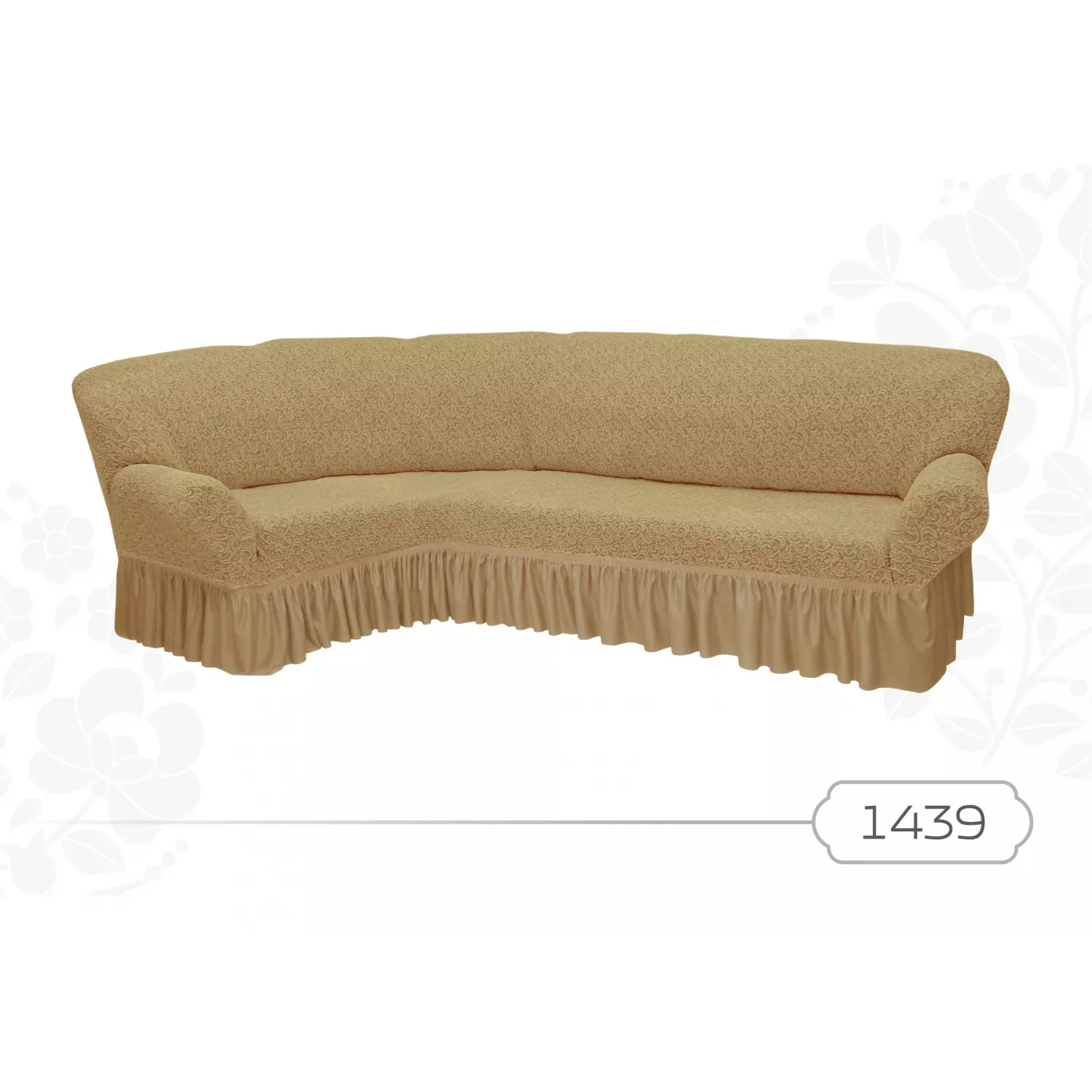 Жаккардовые чехлы для углового дивана с оборкой в увеличенном размере – евро. Отличаются высокой плотностью и красивым фактурным рисунком.