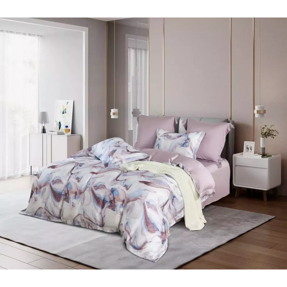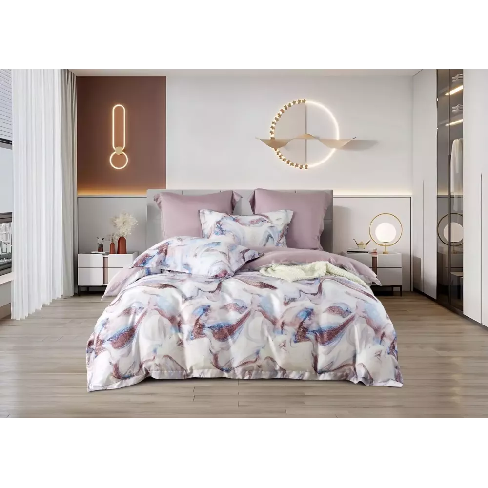 В составе 100% тенсель высшего уровня и премиальное качество изготовления - поэтому у постельного белья исключительная износостойкость. Тенсель – это натуральная ткань из эвкалиптового волокна. На ощупь тенсель напоминает шелк – он такой же легкий и гладкий. Постельное бельё из такой ткани обладает хорошей терморегуляцией, поэтому его можно использовать в любое время года – не будет жарко или холодно.