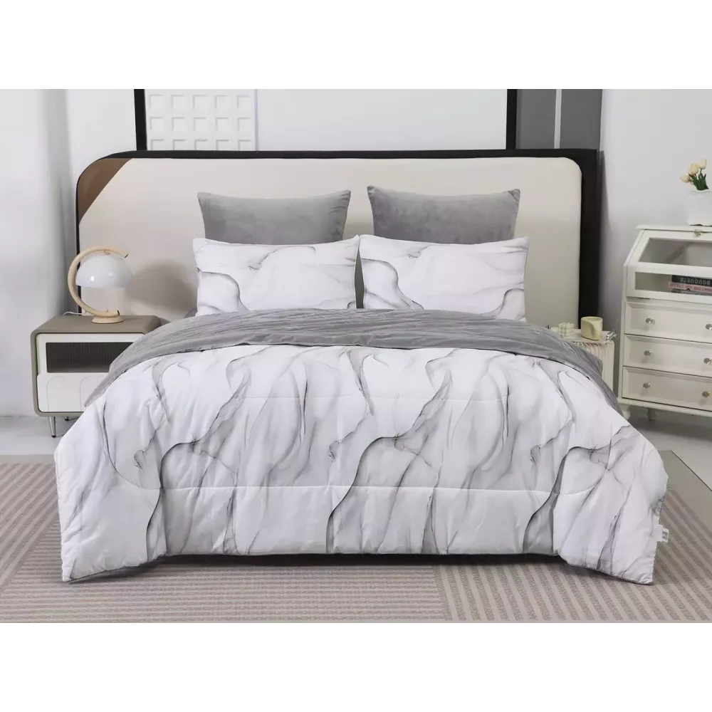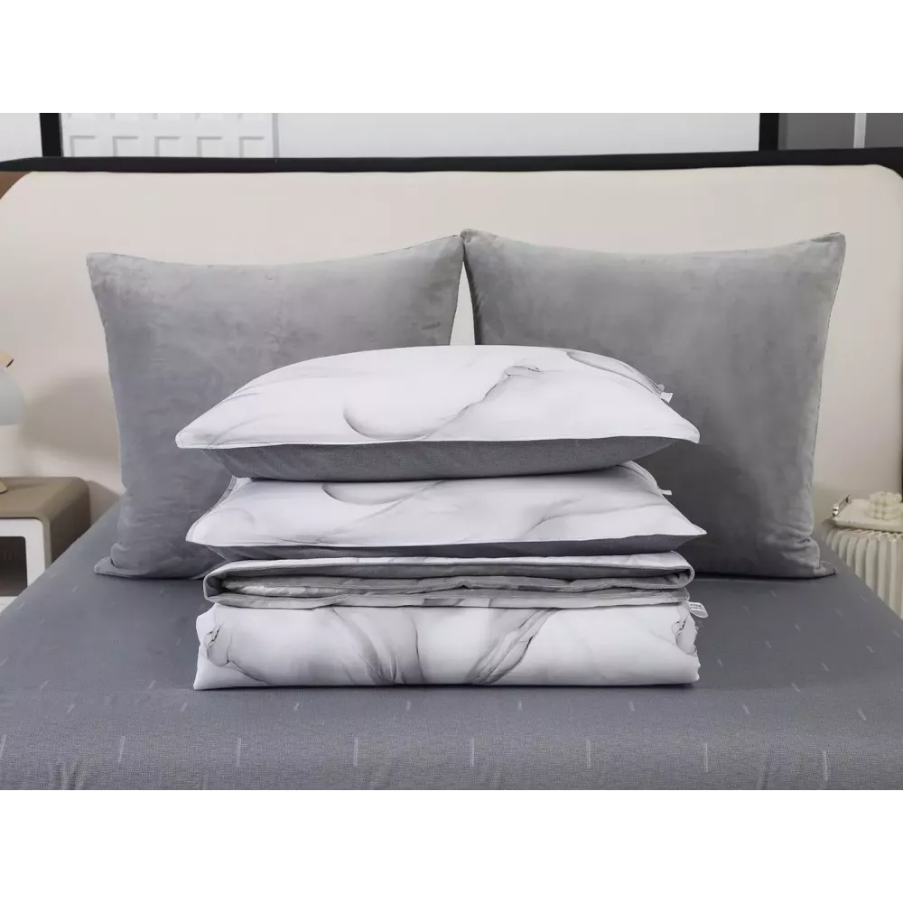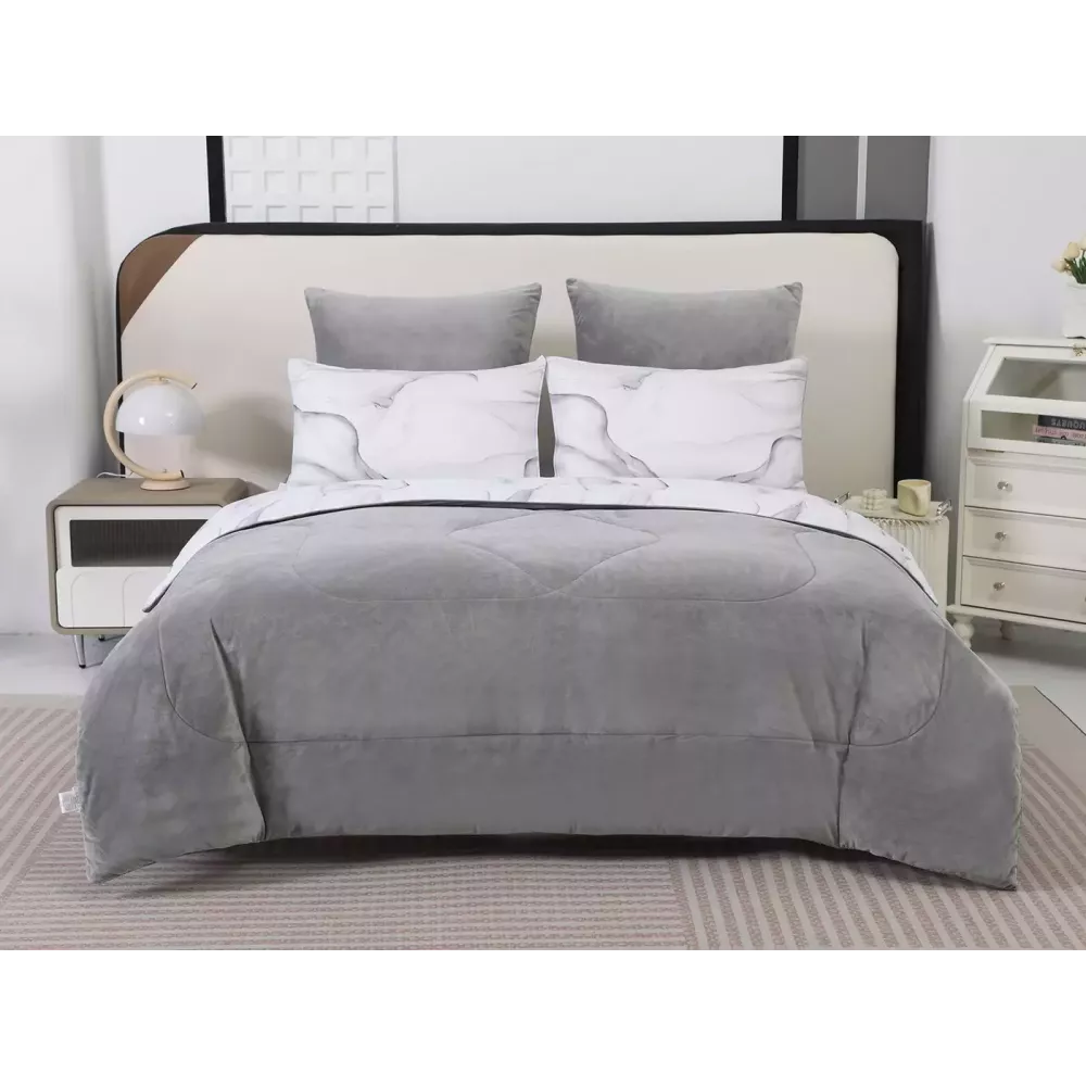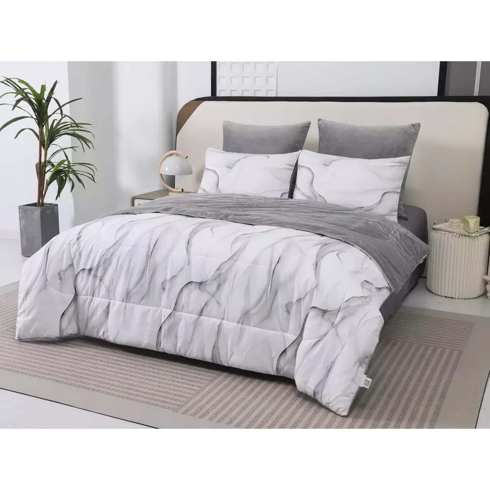 Постельный набор "Роберто" с одеялом-покрывалом, которое не нужно вставлять в пододеяльник от текстильной компании Sofi de Marko. Двустороннее одеяло декорированное велюровым кантом с трёх сторон, его можно использовать как покрывало. Сторона из велюра мягкая и уютная, в холодное время года помож...