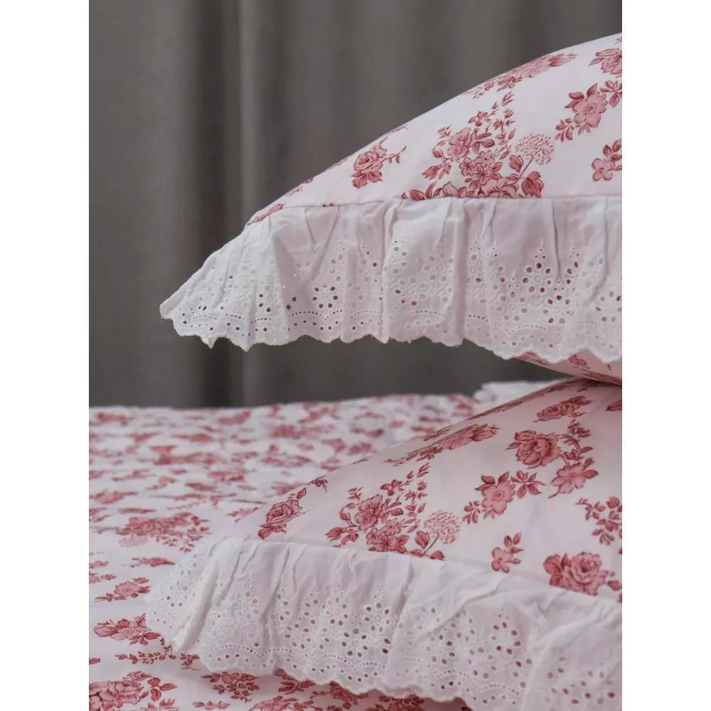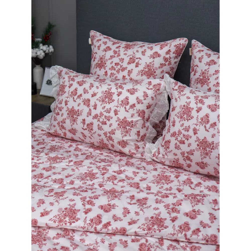 Наволочки 50х70 и одеяло отделаны элегантным кружевом "Ришелье" из утонченного натурального хлопкового батиста.