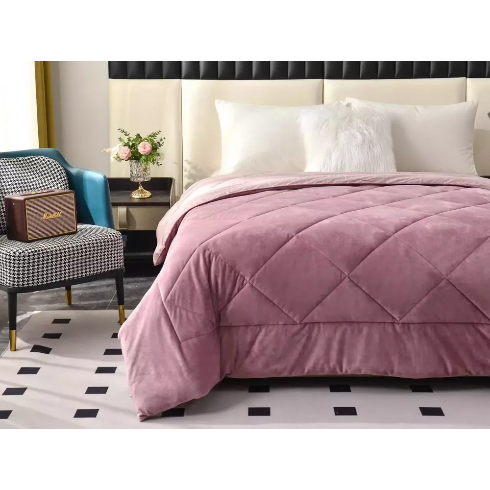 Двустороннее одеяло полуторное Sofi De Marko «Монако» лиловый (велюр-сатин) 160х220