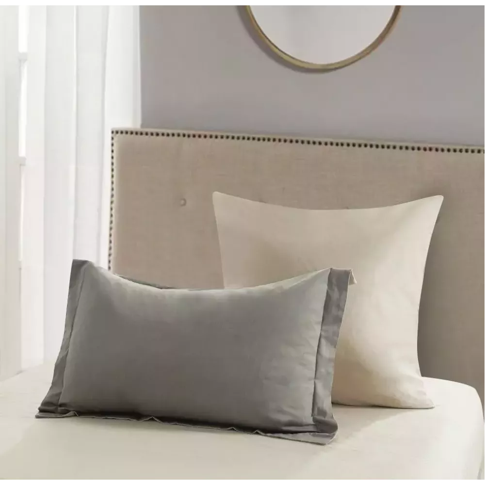 Пододеяльник двуцветный имеет скрытую молнию. В наборе одна наволочка 50х70 с ушками и одна наволочка 70х70.