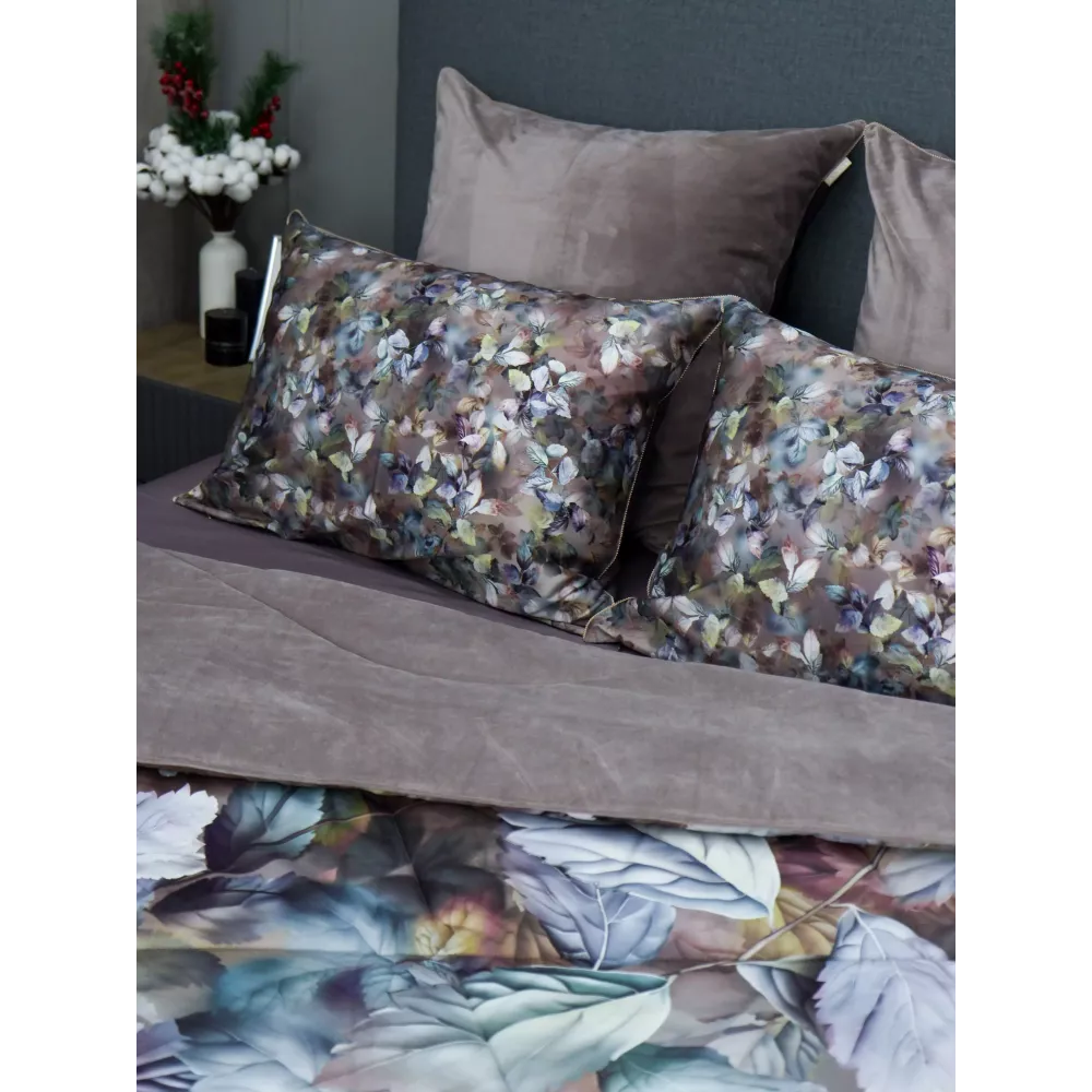 В комплект входят 2 наволочки. Одна наволочка размером 50х70 на молнии с изысканной окантовкой, одна сторона из цветного 100% египетского хлопка, другая сторона из однотонного. Другая наволочка размером 70х70 на молнии с окантовкой, выполнены из комбинации нежного велюра и однотонного египетского хлопка. Такая комбинация позволяет быстро сменить общий стиль комплекта.