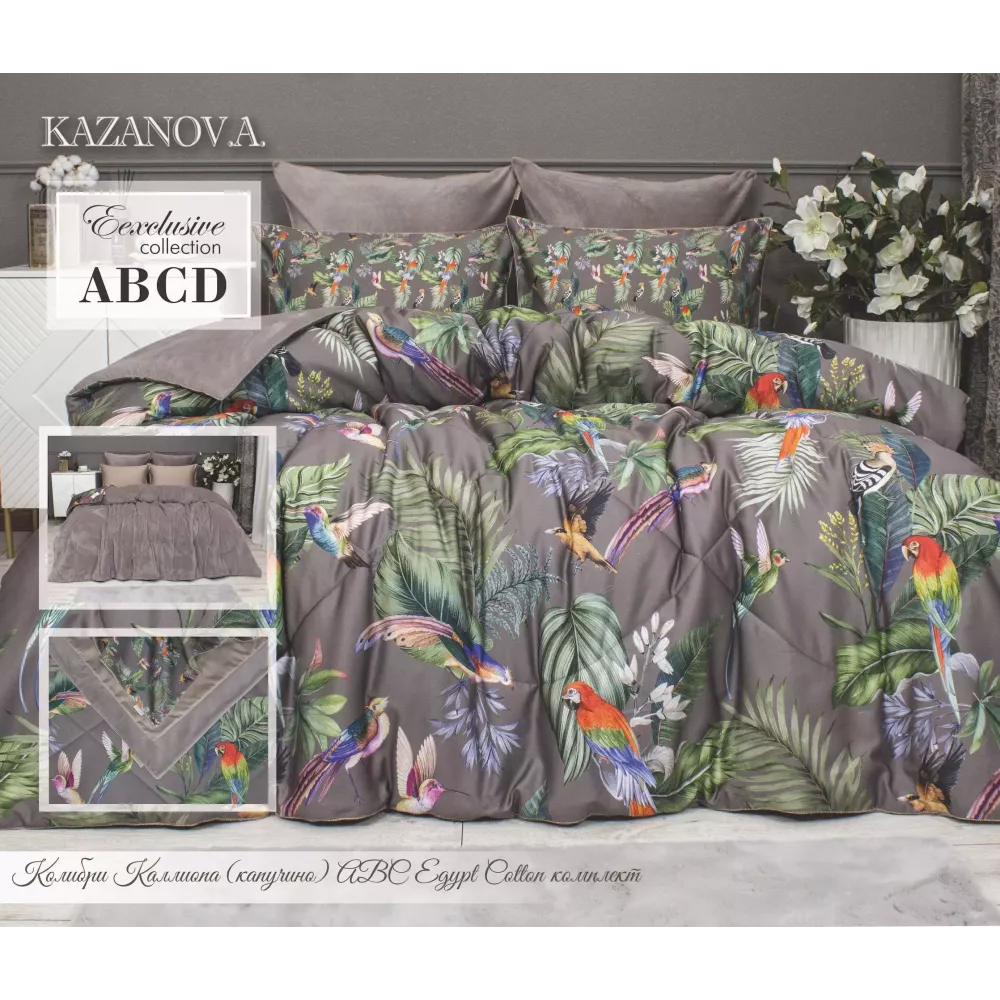 Премиальный комплект постельного белья “Колибри Каллиопа” капучино коллекции «Сатин-Велюр» от известной текстильной компании "Kazanov.a" Комплект состоит из: - двух одеял: верхняя ткань – роскошный мягкий велюр, низ – высококачественный сатин — 100% египетский хлопок. Наполнитель одеяла 100% ми...