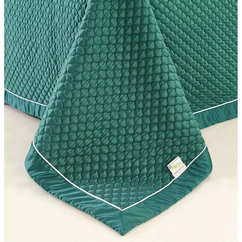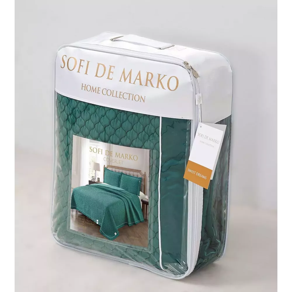 Очень качественное, стильное и современное атласное покрывало с качественной стежкой нитками “Молли” (малахит) от Софи Де Марко. Покрывало создаёт эффект прохлады, отличается долговечностью, практичностью, мягкостью и особым стилем, а так же красивой окантовкой покрывала и наволочки. Покрывало “Sofi de Marko” упаковано в фирменную упаковку ПВХ на молнии с логотипом бренда “Sofi De Marko”.