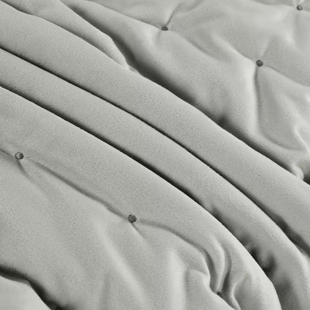 Верхняя сторона – невероятно мягкий велюр, основа – ткань. Интересная и оригинальная стежка – “точечками”. Покрывало отличается долговечностью, практичностью, мягкостью и особым стилем, который придаёт вашей комнате дополнительный уют и создаёт комфортную обстановку. Покрывало упаковано в фирменную упаковку на молнии с логотипом бренда “Sofi De Marko”.