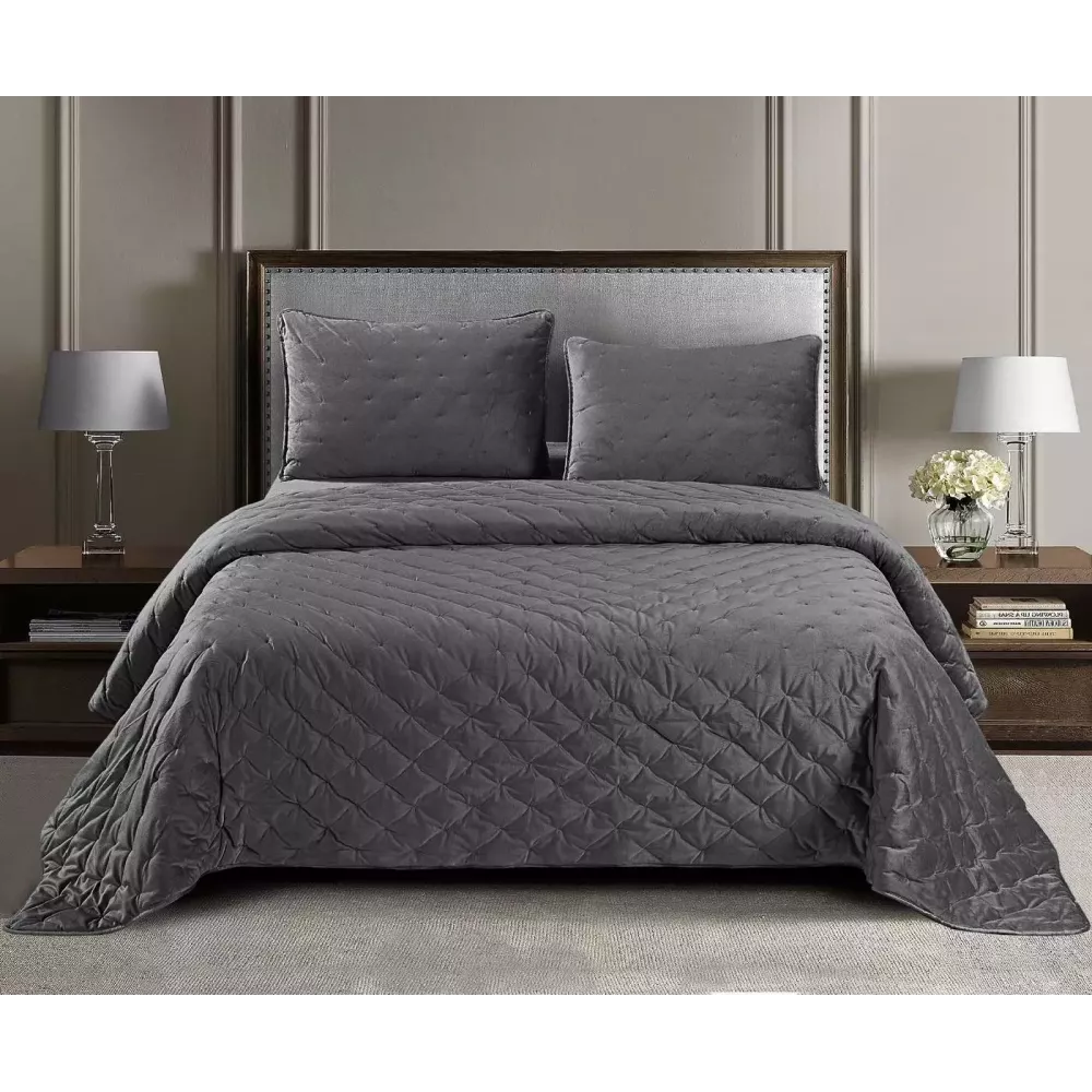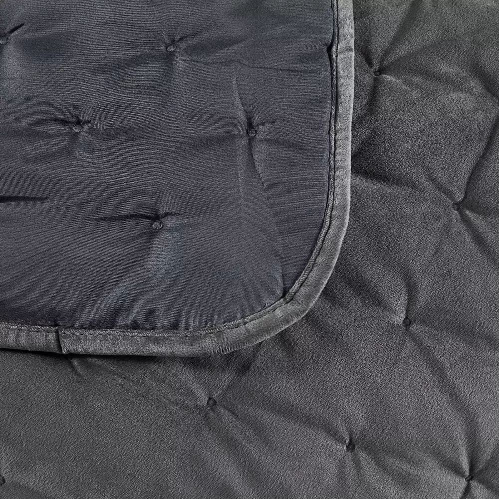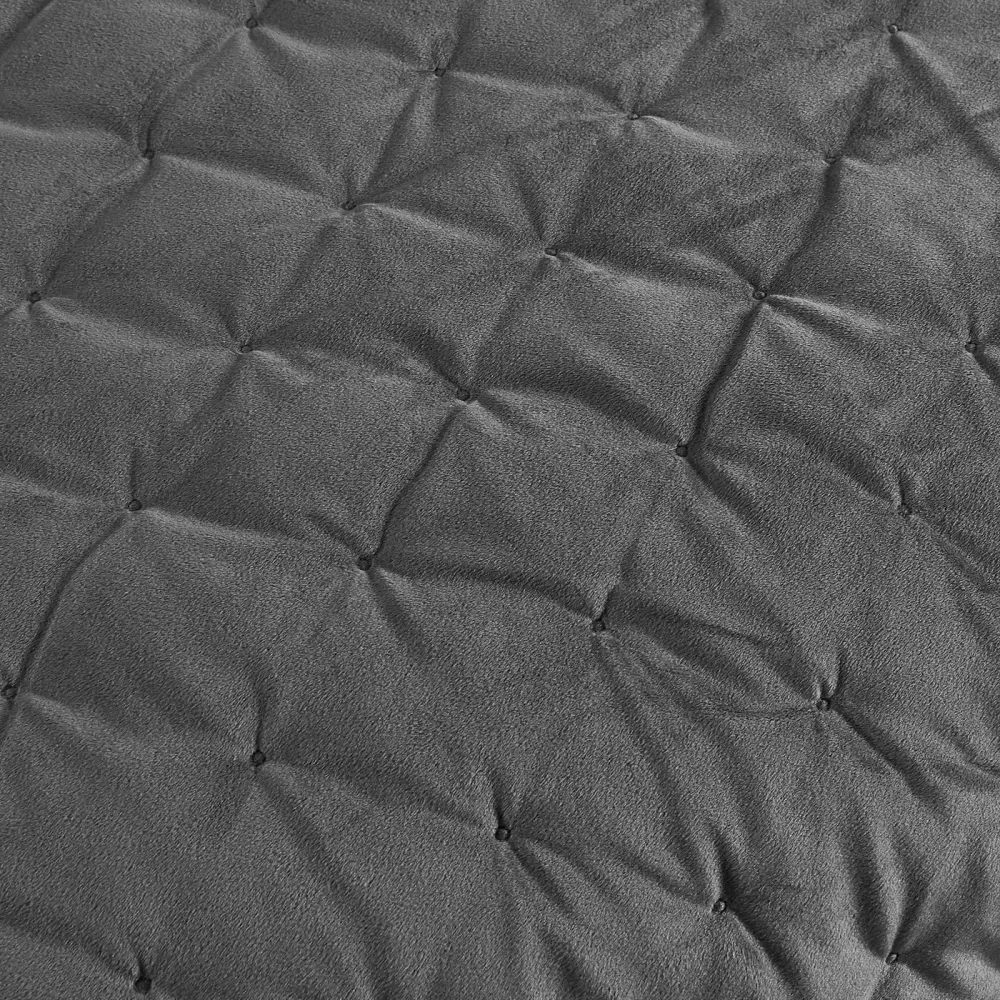 Верхняя сторона – невероятно мягкий велюр, основа – ткань. Интересная и оригинальная стежка – “точечками”. Покрывало отличается долговечностью, практичностью, мягкостью и особым стилем, который придаёт вашей комнате дополнительный уют и создаёт комфортную обстановку. Покрывало упаковано в фирменную упаковку на молнии с логотипом бренда “Sofi De Marko”.
