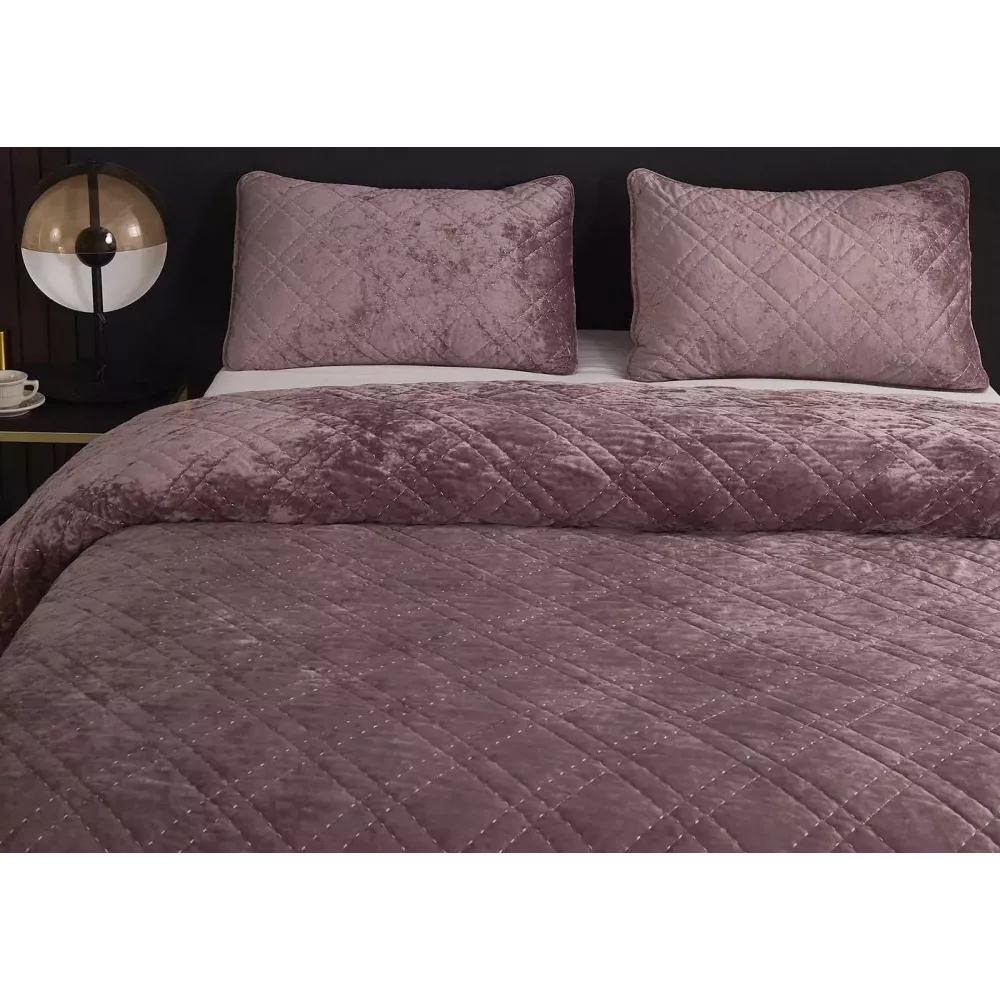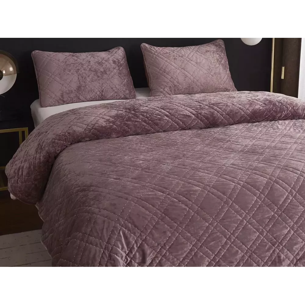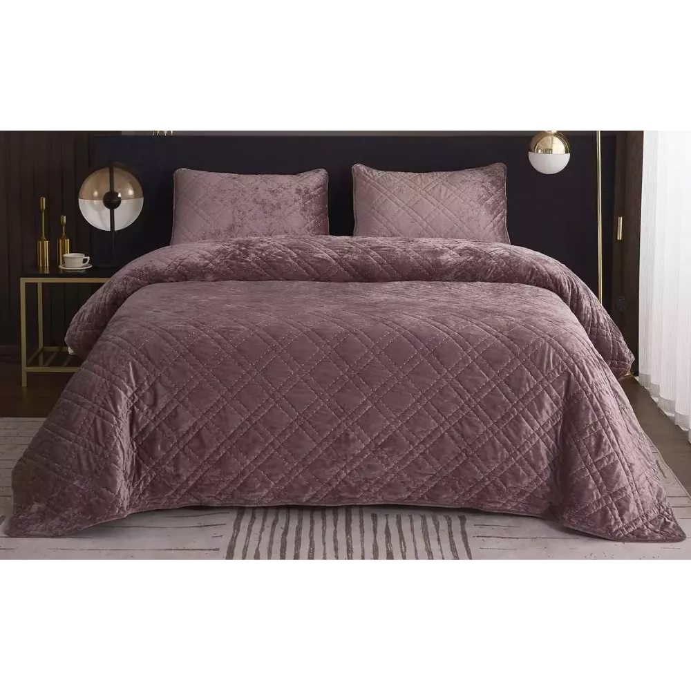 Коллекция очень качественных покрывал “Селена” (пепел роза) от текстильной компании “Sofi De Marko” из велюра невероятна приятна на ощупь, отличается особой мягкостью, нежностью. Легко поддается стирке, быстро сохнет и не даёт усадку. Покрывало качественно и красиво простегано нитями, что придает долговечности и стиля.