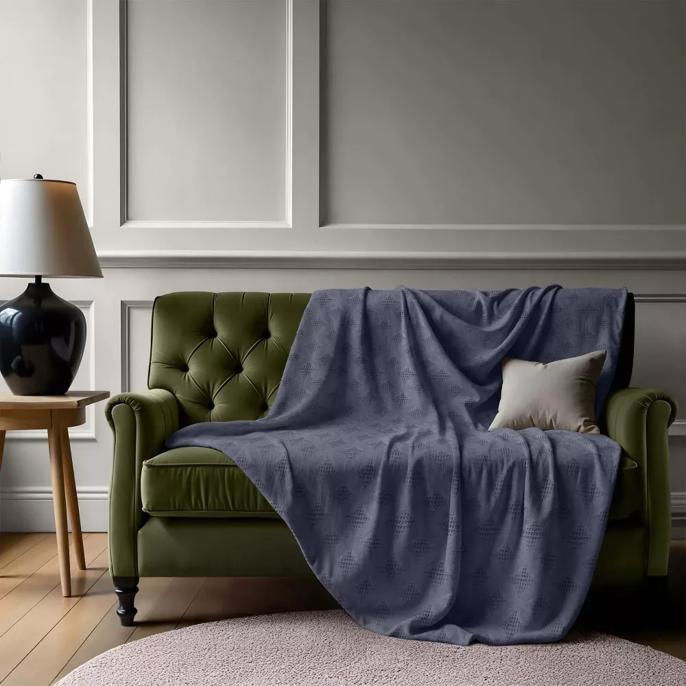 Выполненный из гипоаллергенного хлопка, плед сочетает в себе потрясающую мягкость и воздухопроницаемость, а широкая цветовая палитра позволяет подобрать плед к любому интерьеру.