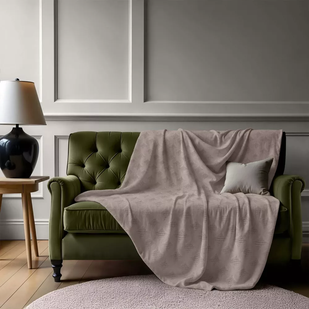 Жаккардовые пледы отлично дополнят интерьер любой гостиной или спальной комнаты. Тщательно подобранные пастельные цвета коллекции добавят нотки утонченности и придадут уют любому помещению. Пледы прекрасно сочетаются между собой и станут незаменимыми помощниками при создании Вашего уникального ди...