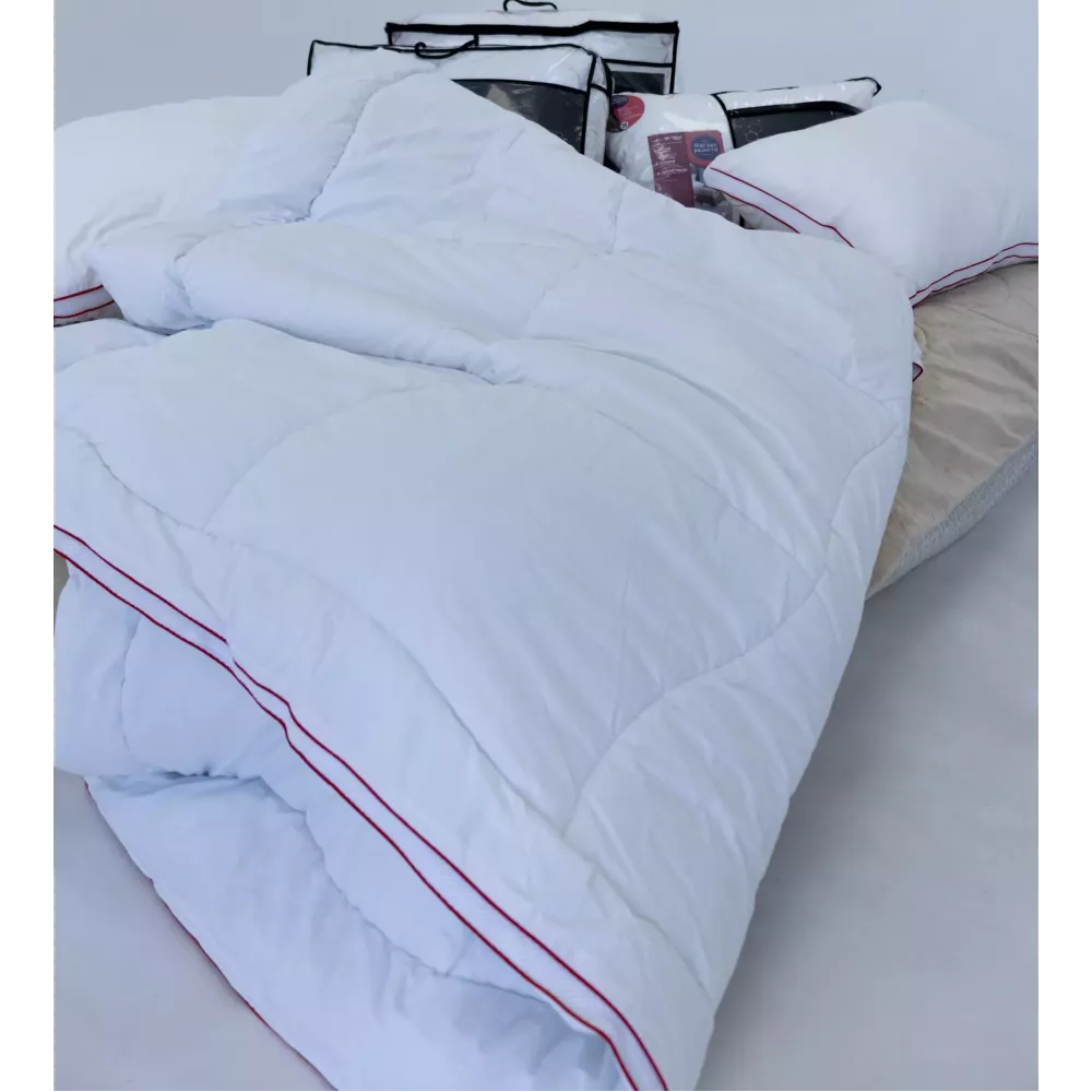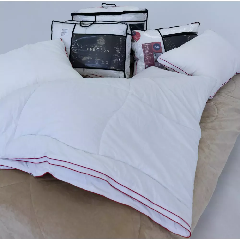 Воздушное одеяло премиум качества Verossa "AIRY" от текстильной компании NordTex. Уникальность заключается в перфорационной ленте огибающей одеяло по всему периметру, с ее помощью достигается система вентиляции наполнителя. Ткань одеяла прочная, дышащая из 100% хлопка. Наполнитель - современное с...