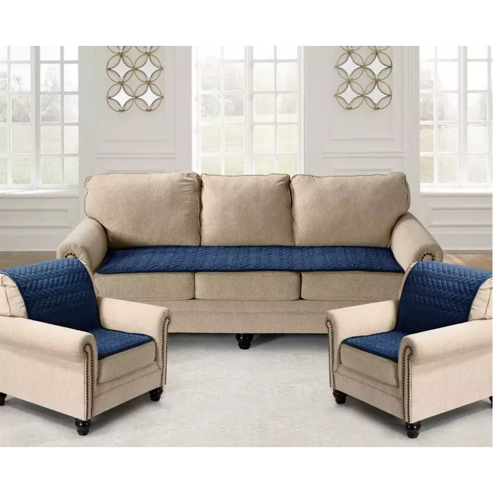 Набор покрывал для мягкой мебели Karteks “Паркет” синий (70х210 - 1 шт., 70х150 - 2 шт.)