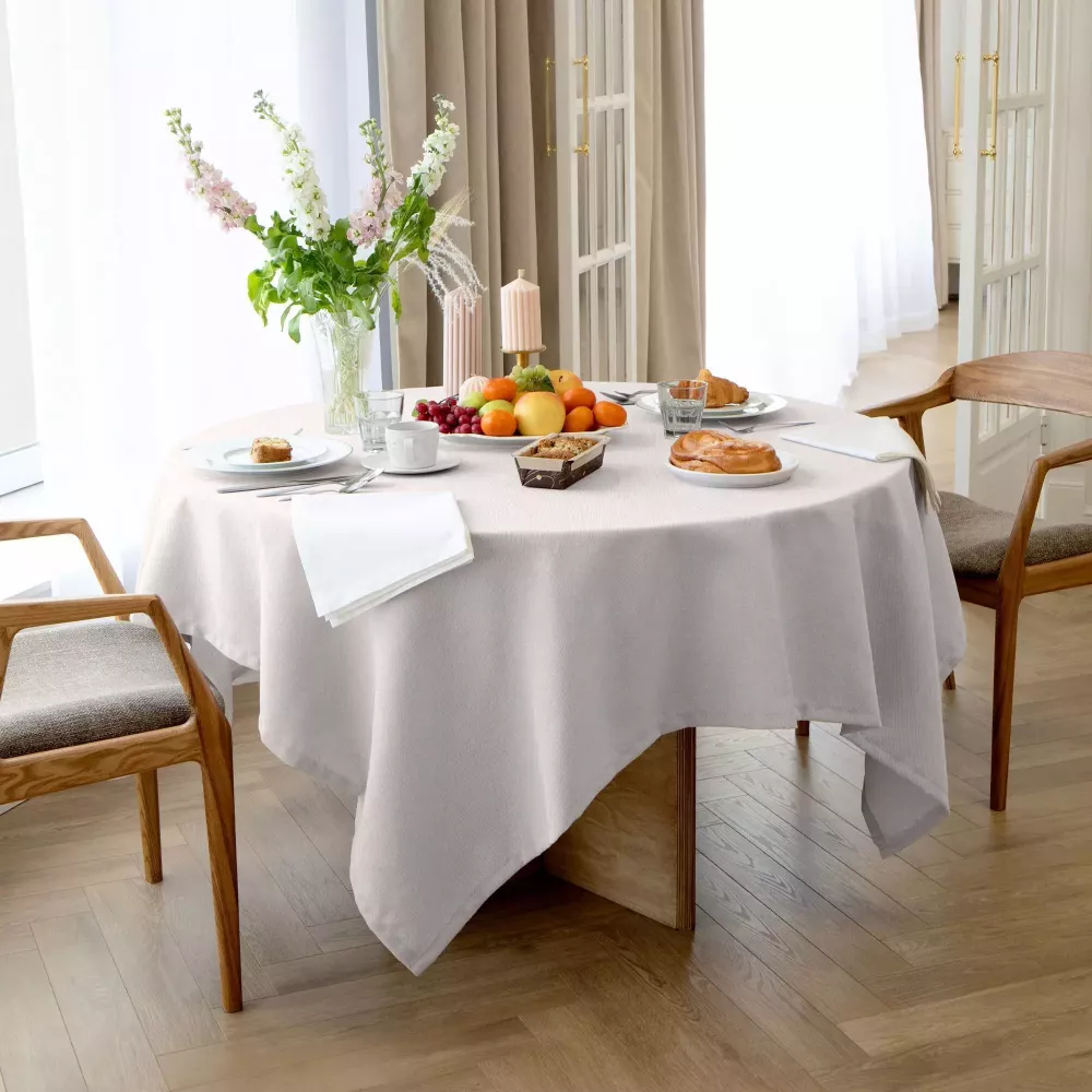 Скатерть Волшебная ночь “Рогожка” с эффектом натурального льна станет превосходным украшением вашей кухни. Материал повторяет льняную структуру ткани, но имеет и дополнительные преимущества: особая практичность, высокая износостойкость и устойчивость к запахам, что особенно важно для кухни.