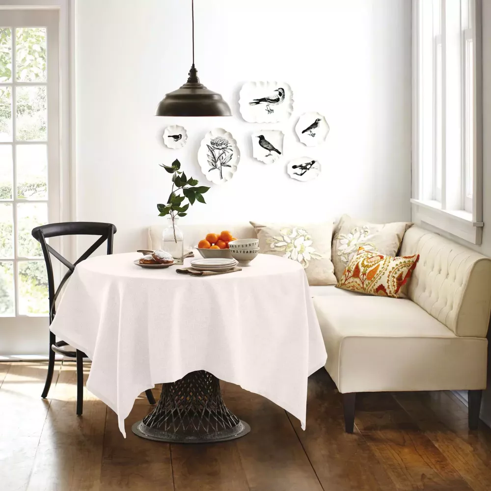 Скатерть из рогожки неприхотлива в уходе, подходит под совершенно разные дизайны и прослужит вам долгое время.