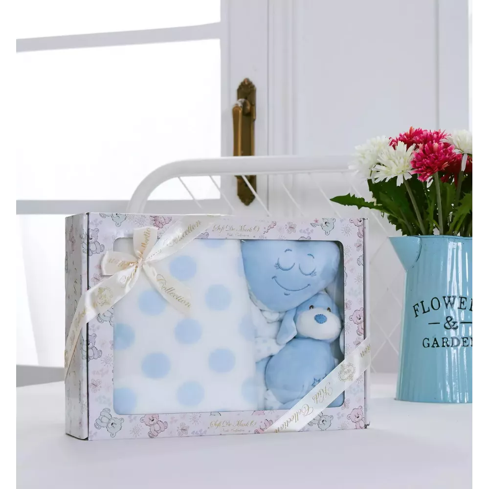 Детский двухсторонний плед в комплекте с мягкой игрушкой в подарочной упаковке Sofi de Marko “№2” (голубой). Очень нежный на ощупь, мягкий и шелковистый плед из велсофта подарит тепло и уют Вашему ребёнку. Изделия из велсофта износоустойчивые, легко стираются, быстро сохнут и на нем не образуются катышки. Плед “Софи де Марко” порадует ребёнка своим приятным внешним видом, мягкостью, а родителей своим качеством и практичностью!