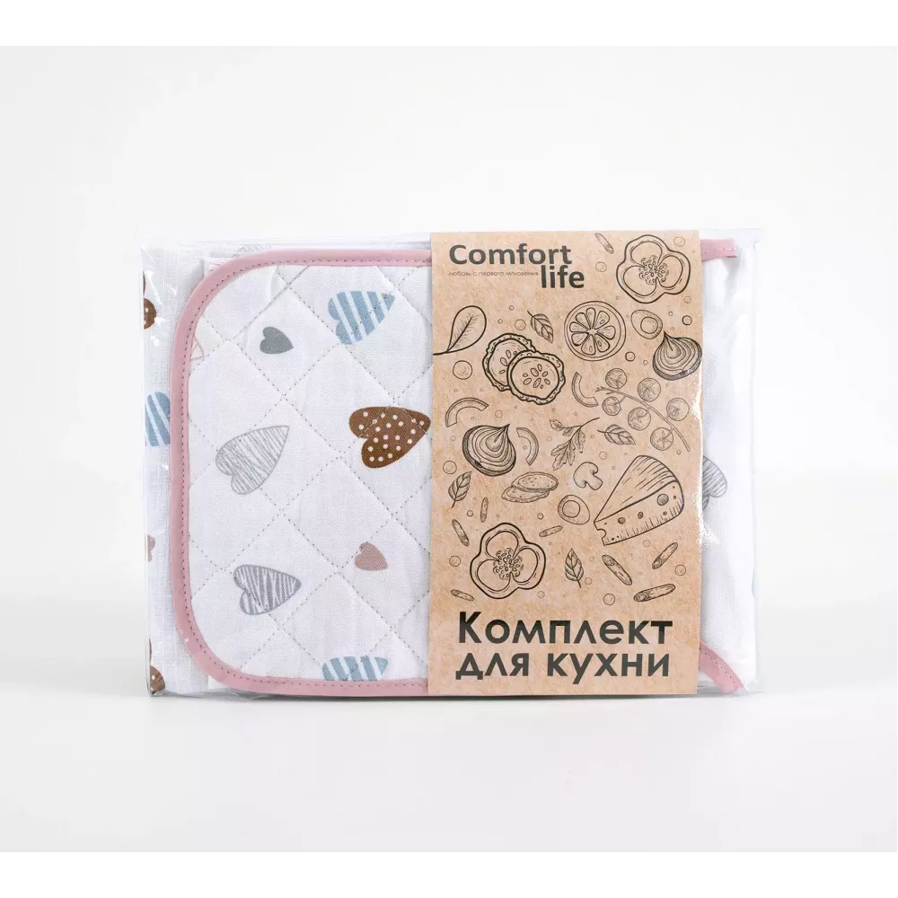 Набор для кухни высокого качества из 100% хлопка. В наборе: фартук размером 60х70 (1шт), прихватка размером 20х20 (1шт) и декоративная салфетка из вафельного полотна размером 47х60 (1шт).