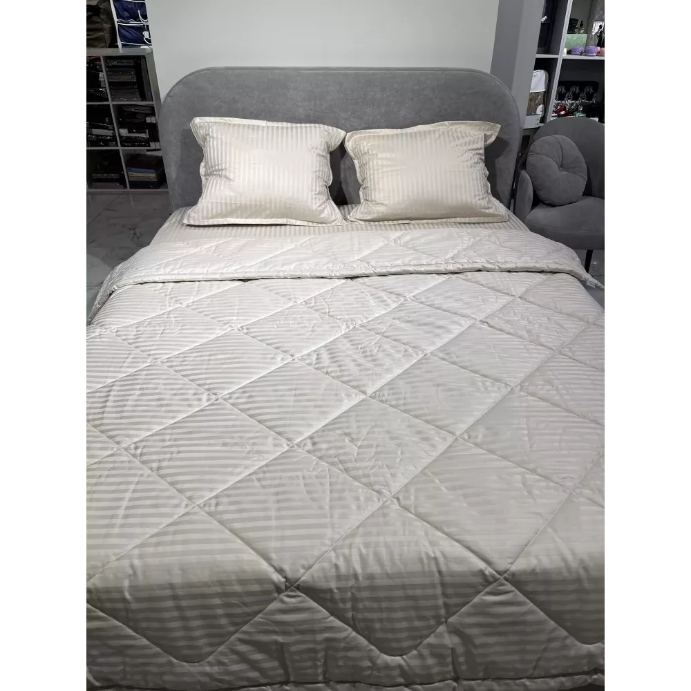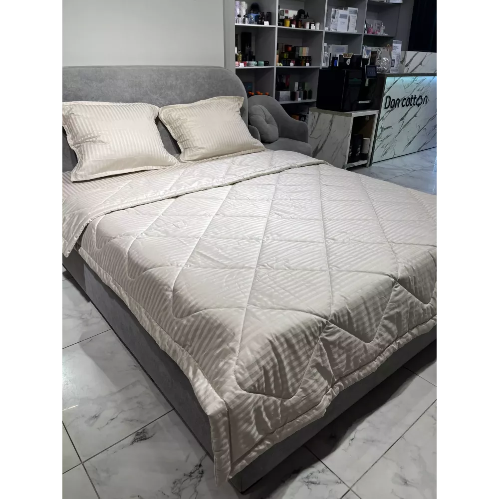 Это гармония премиальных материалов, текстильного мастерства и практичного комфорта. Страйп-сатин не только создаёт визуальную глубину и выразительность, но и обеспечивает превосходные эксплуатационные характеристики, которые позволяют изделию долго сохранять свой вид и свойства. Одеяло и продуманные наволочки создают единую концепцию, даря не только эстетическое удовольствие, но и полноценный отдых.