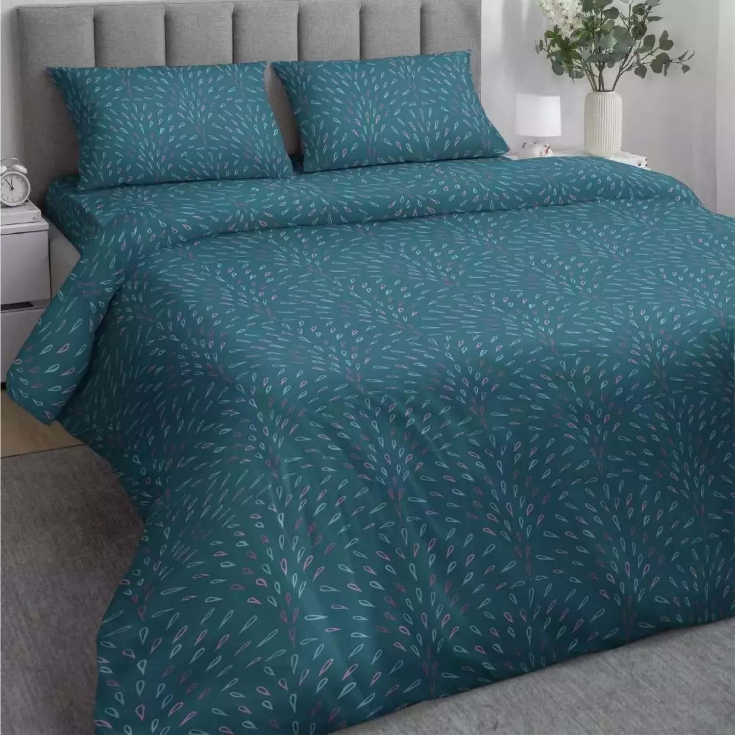 Комплект постельного белья “Самойловский текстиль” изготовлен в России (Иваново) из натурального 100% хлопка (бязи), отличающегося особой бархатистой структурой и чрезвычайной мягкой на ощупь поверхностью. Комплект “Инди” неприхотлив в уходе, износостойкий, выдерживает большое количество стирок и радует своей доступной ценой и современным дизайном.