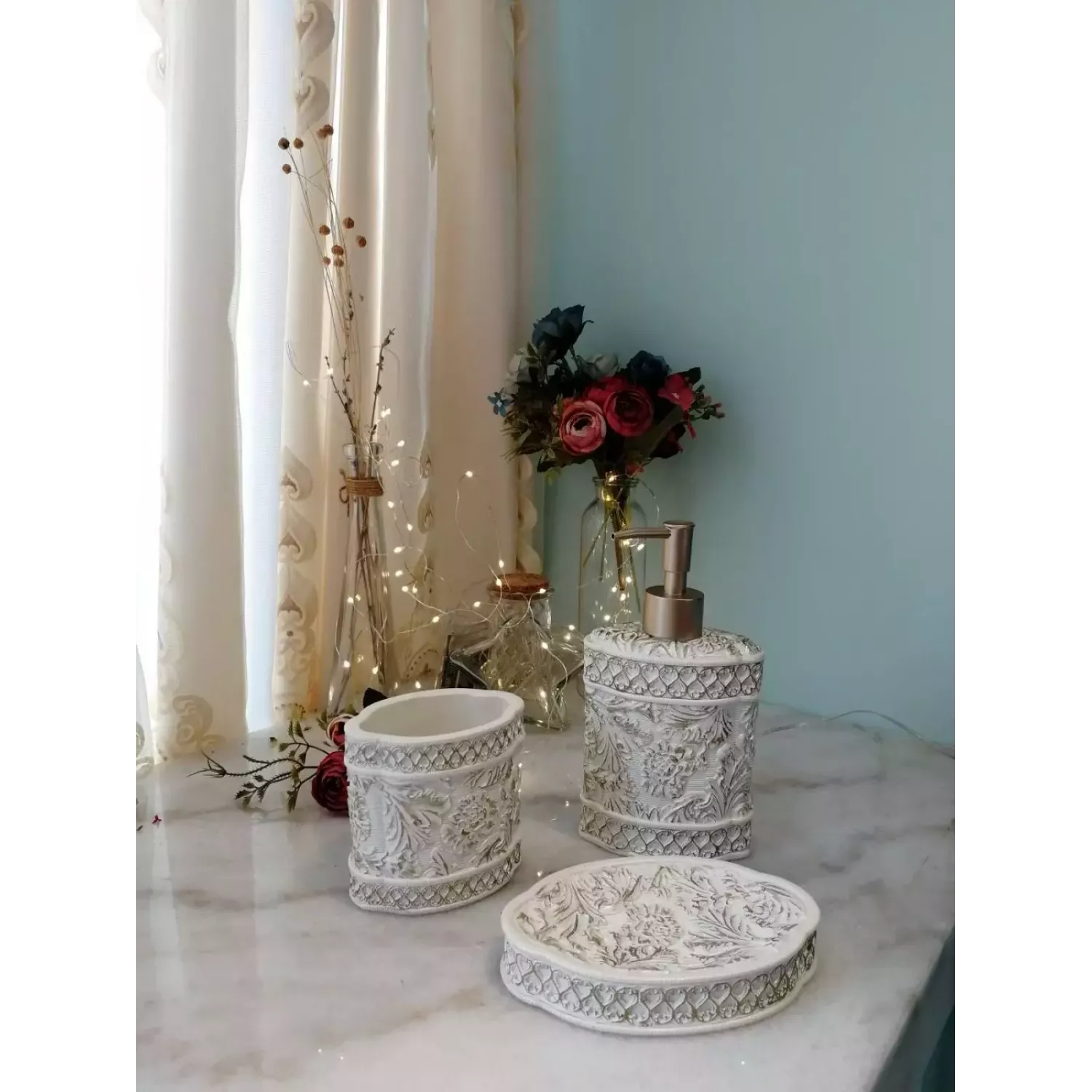 В набор для ванной “№39” (белый) от Sofi de Marko входят: дозатор для жидкого мыла, стаканчик для зубных щеток и мыльница для твердого мыла. Эстетичный внешний вид набора поможет дополнить дизайн ванной комнаты. Аксессуары для ванной комнаты призваны не только быть функциональными, но и создават...