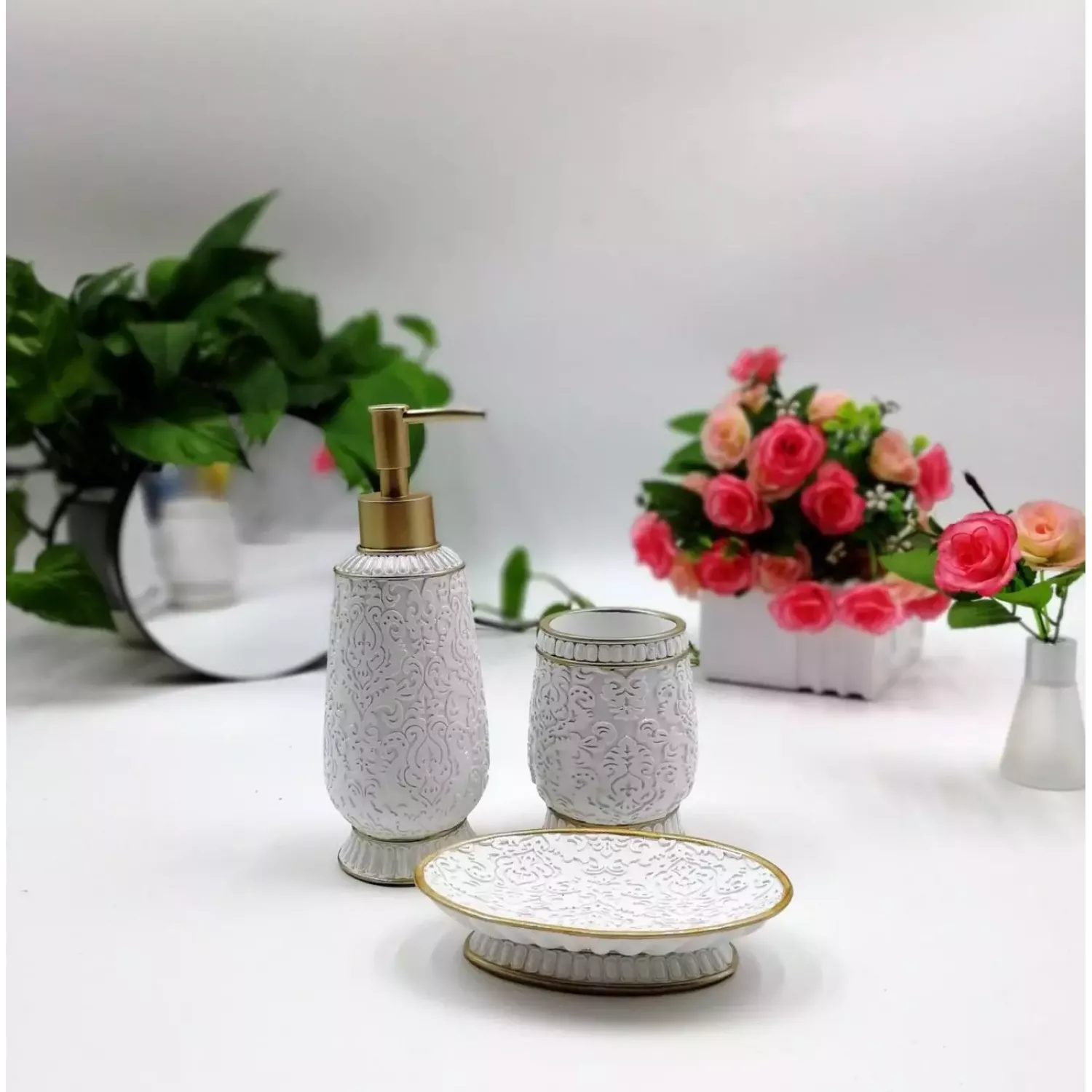 В набор для ванной “№37” (белый) от Sofi de Marko входят: дозатор для жидкого мыла, стаканчик для зубных щеток и мыльница для твердого мыла. Эстетичный внешний вид набора поможет дополнить дизайн ванной комнаты. Аксессуары для ванной комнаты призваны не только быть функциональными, но и создават...