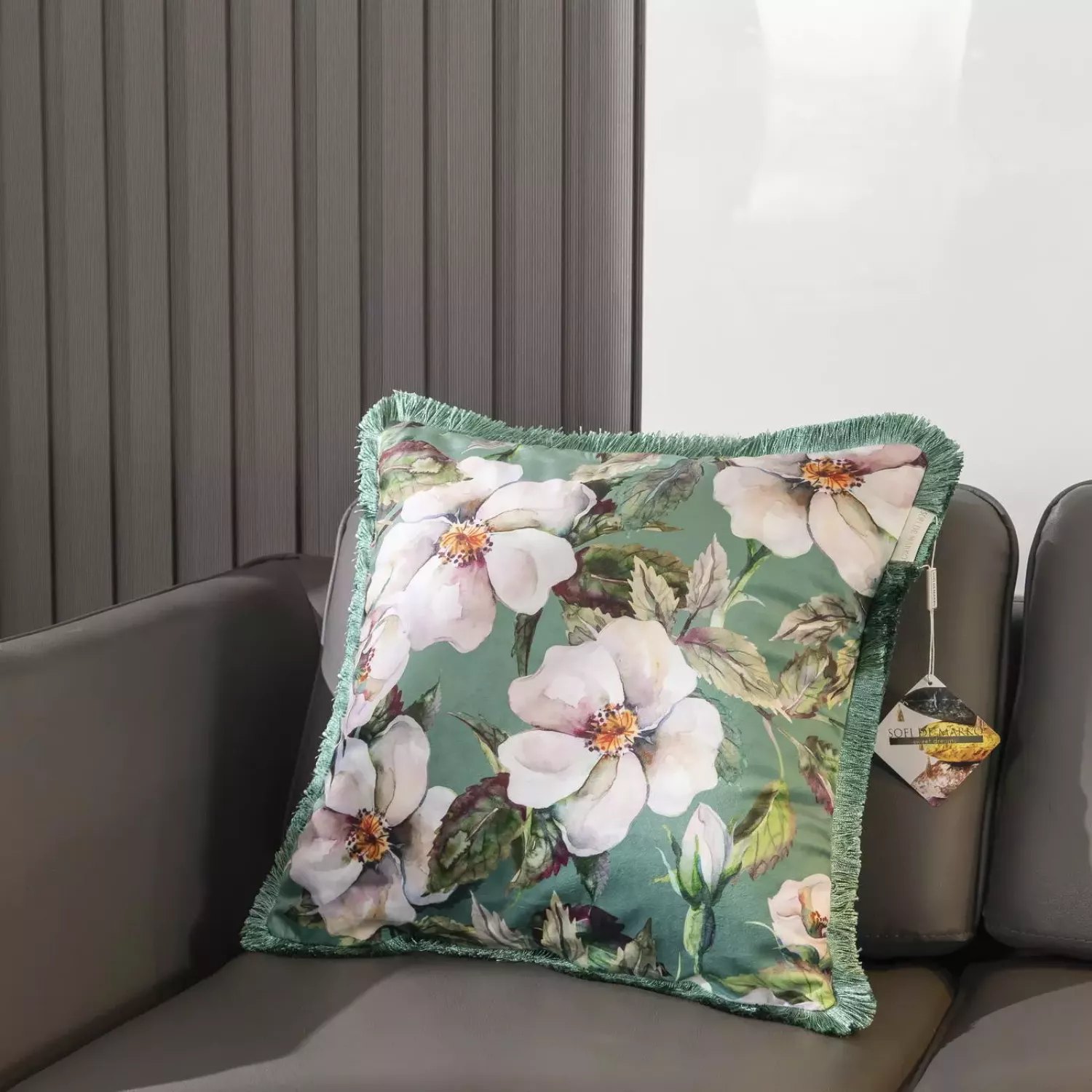 Роскошная декоративная наволочка Касандра от текстильной компании Sofi De Marko. Яркие цветочные принты станут изюминкой вашей гостиной или спальни. Наволочки двусторонние, поэтому если вы захотите внести изменения в интерьер, это легко сделать, перевернув подушку обратной стороной. Бахрома в тон...
