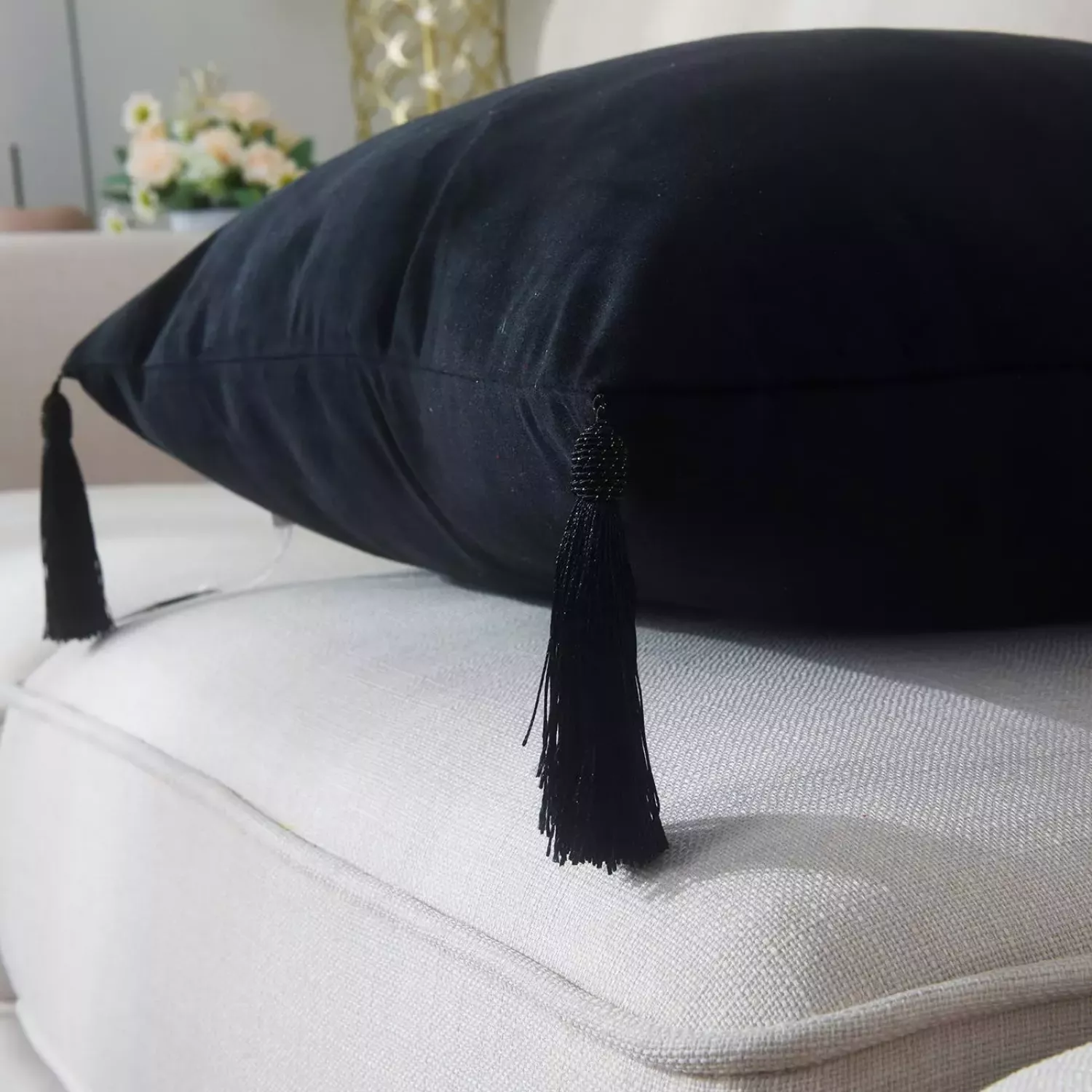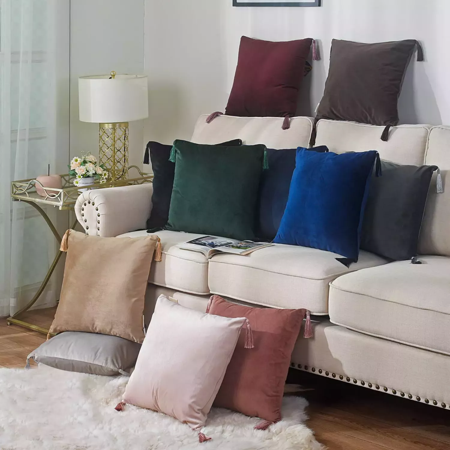 Стильные наволочки выполнены из велюра, отделаны декорированными кисточками. В составе 100% вискоза наивысшего качества. Они потрясающе выглядят и невероятно практичны. В наличии большой ассортимент цветов.