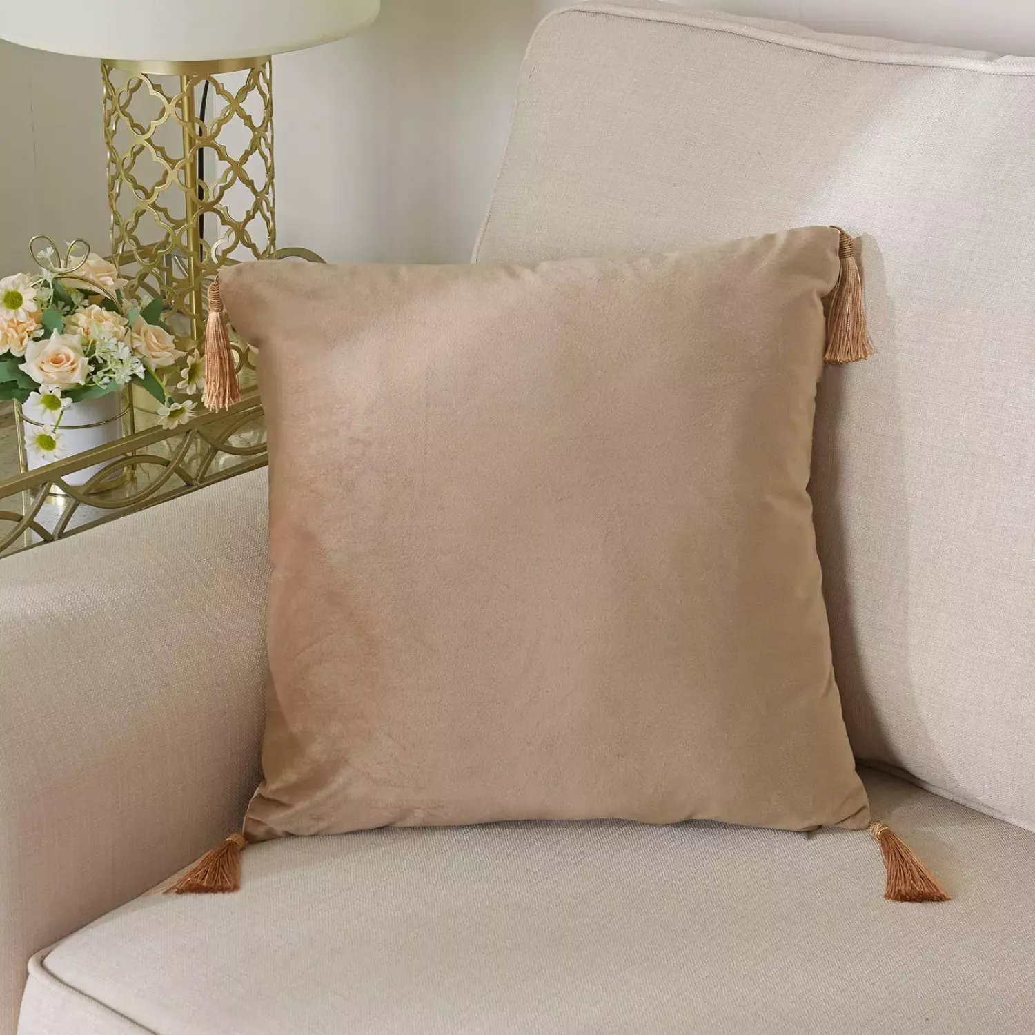 Стильные наволочки выполнены из велюра, отделаны декорированными кисточками. В составе 100% вискоза наивысшего качества. Они потрясающе выглядят и невероятно практичны. В наличии большой ассортимент цветов.