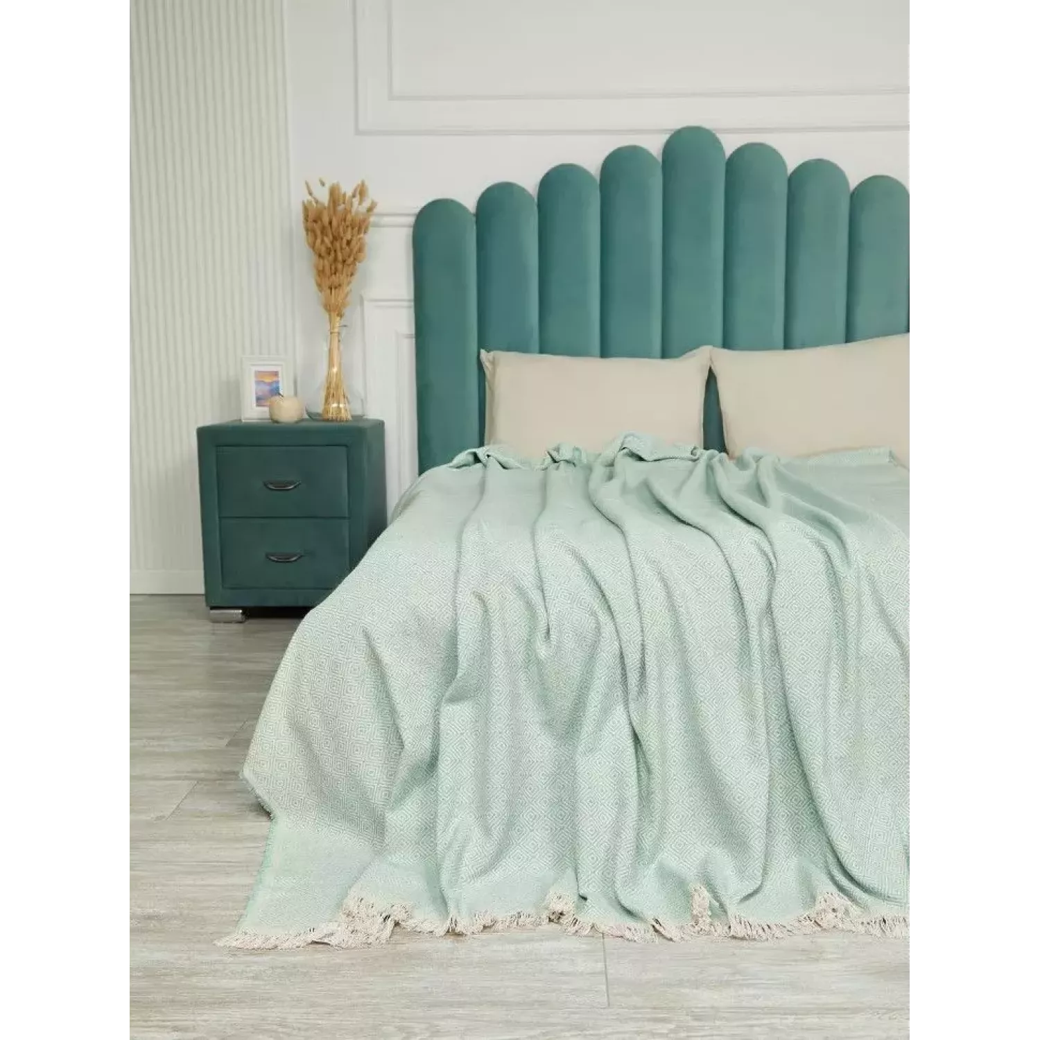 Оригинальное покрывало-плед размером 200х240 "EVIUM" от текстильной компании Karteks премиального качества. изготовлено из сочетания акрила и хлопка. Оно легко поддается машинной стирке, быстро сохнет и не дает усадку. Произведено в Турции.