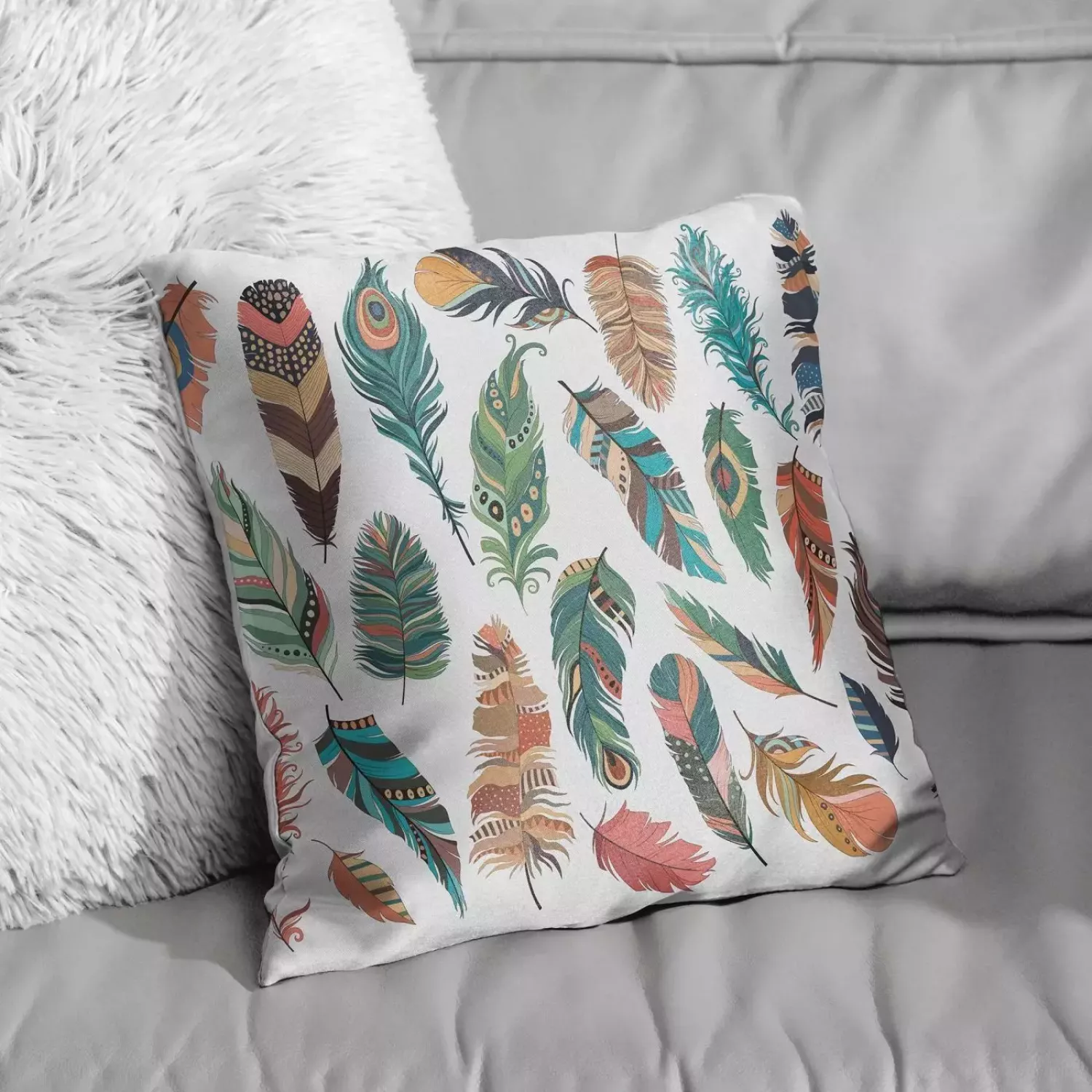 Декоративная подушка "Перышки" от текстильной компании NordTex. Ткань сделана из 100% полиэстера, очень прочная и износостойкая, легкая, хорошо сохраняет форму, мало мнется, устойчива к воздействию тепла и света, легко стирается и не нуждается в специальном уходе.