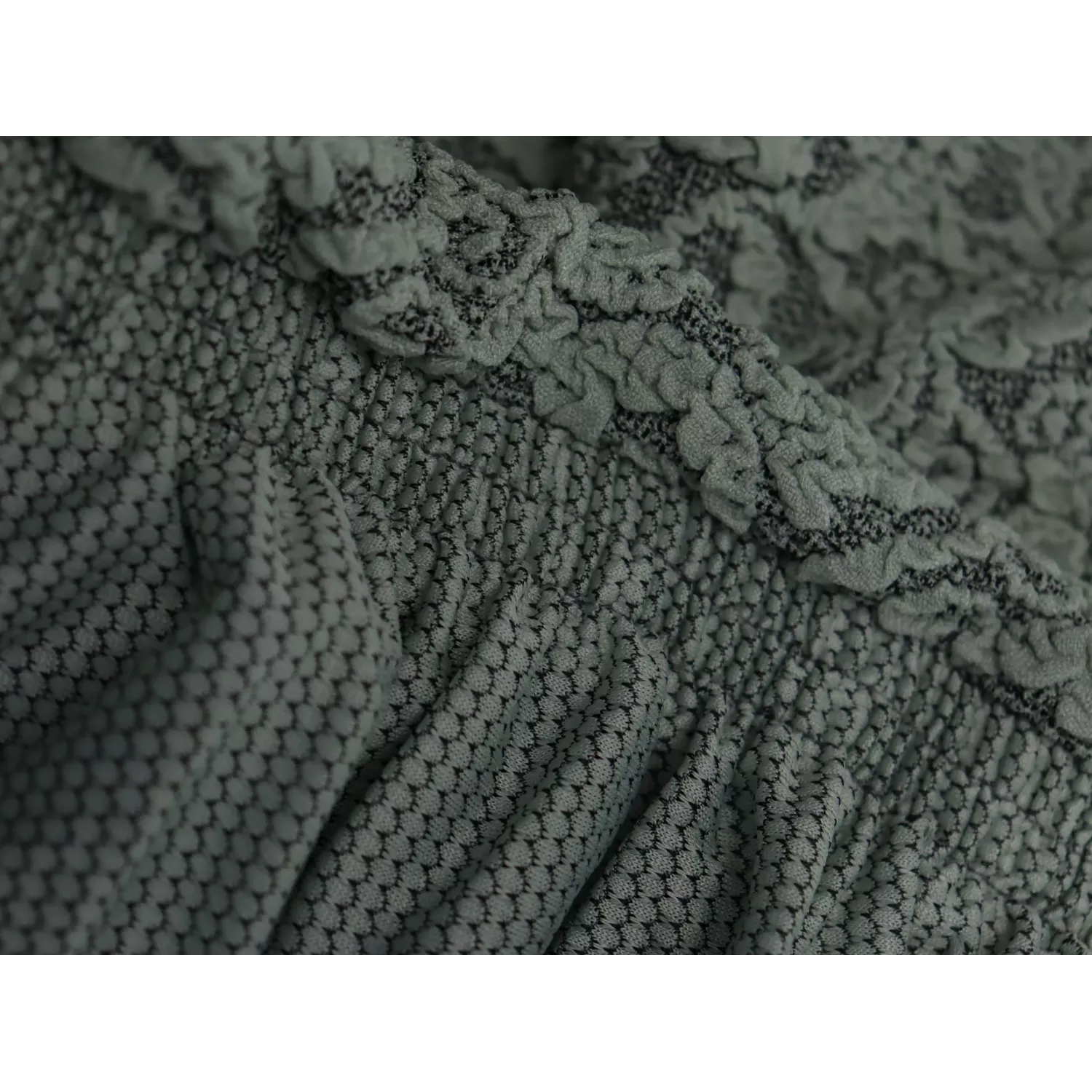 Чехол на прямой трехместный диван и два кресла с оборкой Жаккард ментол