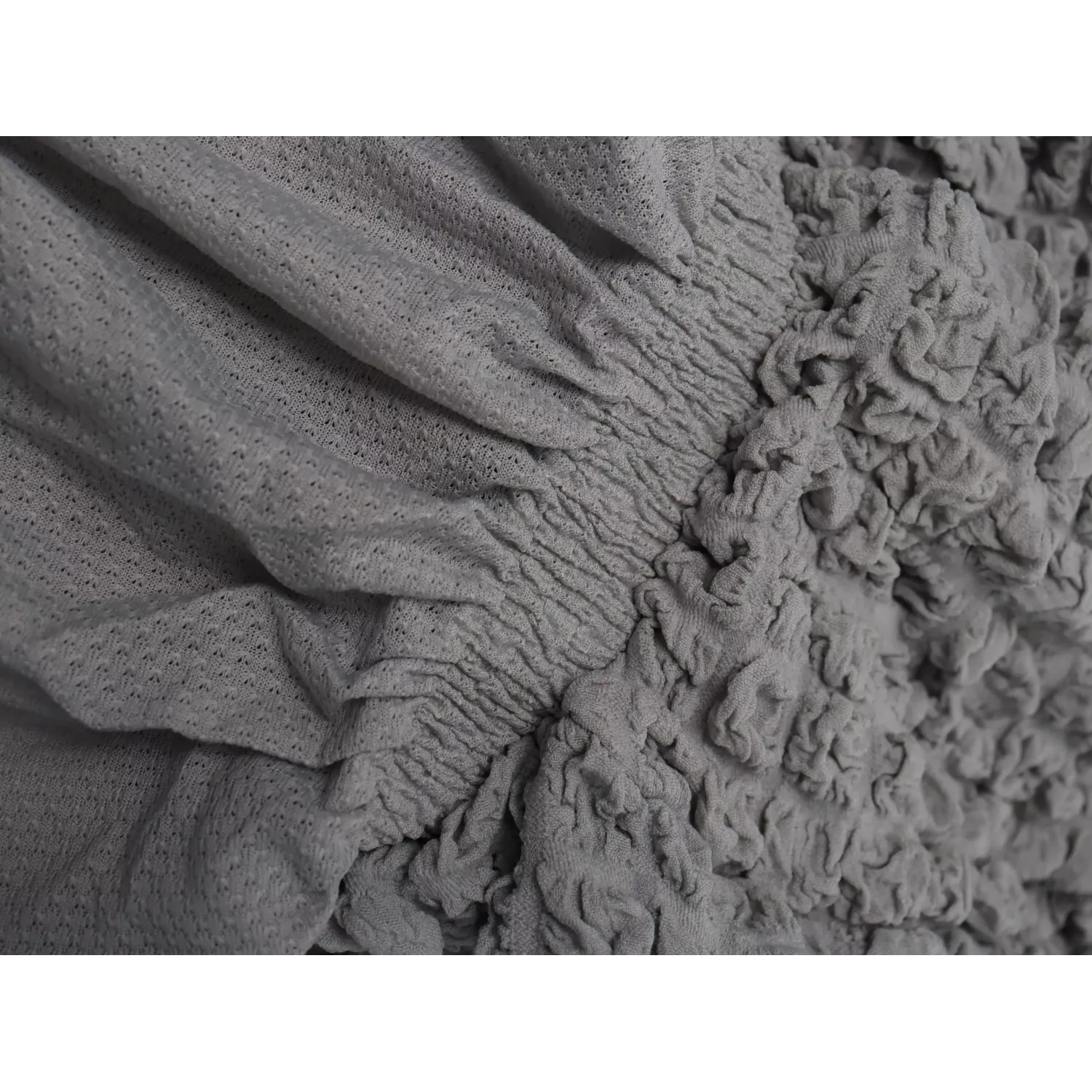 Чехол на прямой трехместный диван и два кресла с оборкой серый