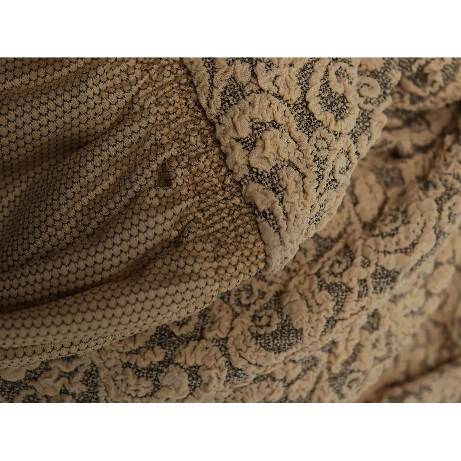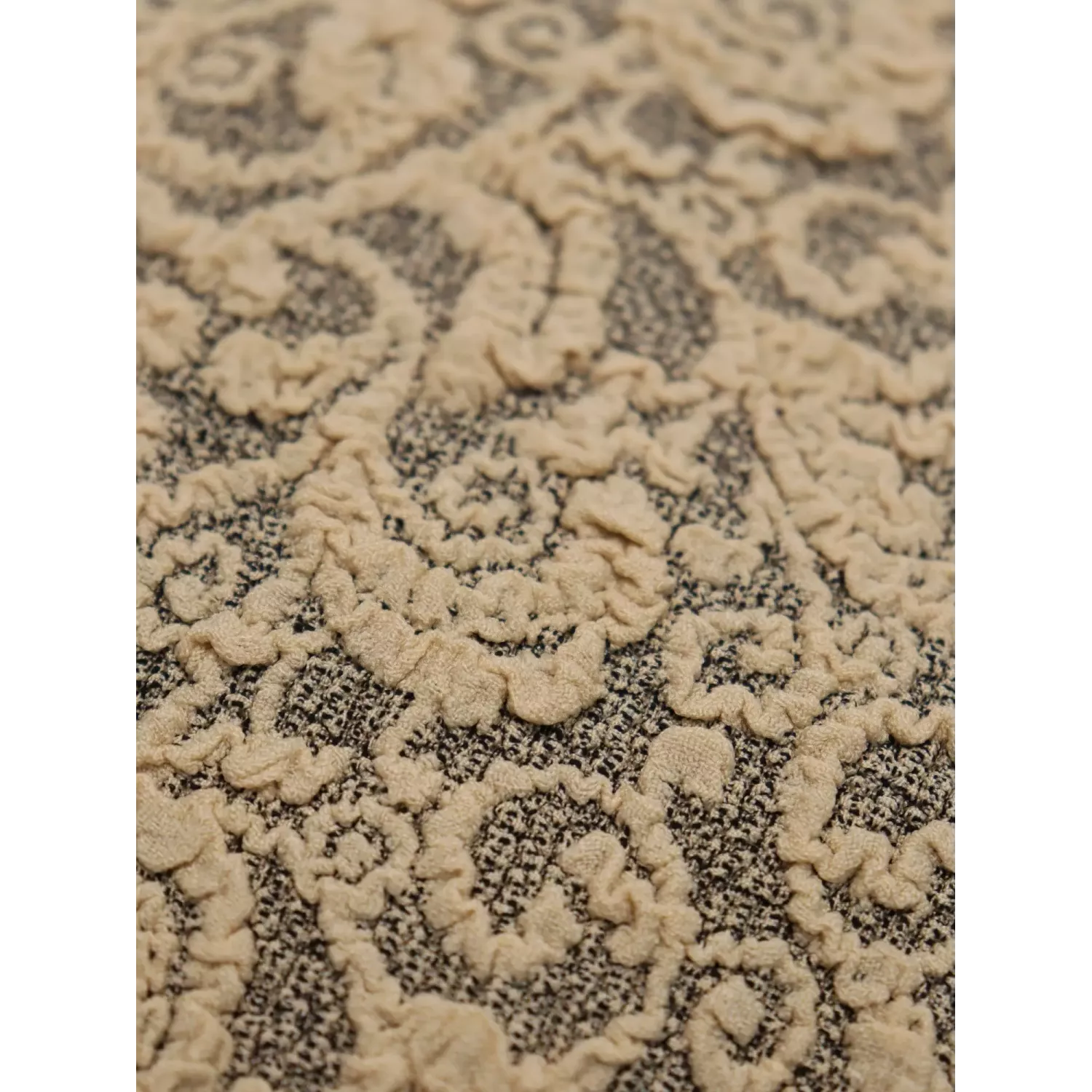 Чехол на угловой диван с оборкой Жаккард светло-бежевый