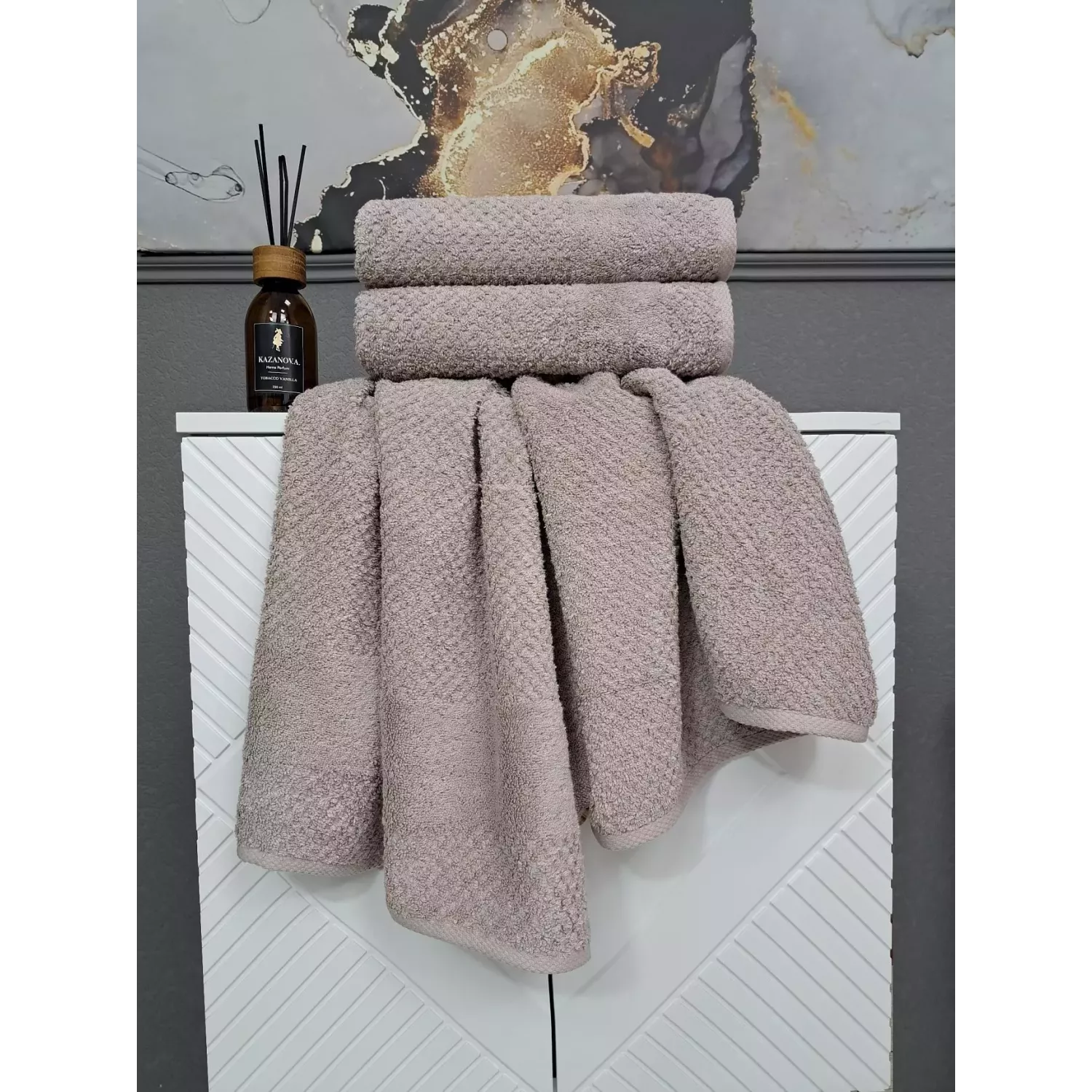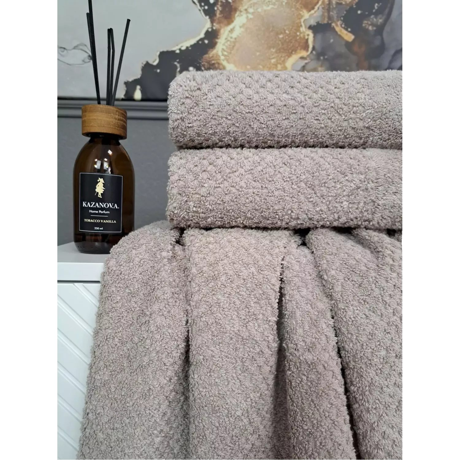 Набор однотонных махровых полотенец высокого качества “Gabriel” от текстильной компании Kazanov.a. Полотенца изготовлены из 100% натурального хлопка, махровое полотно соткано в технике Popcorn, с отделкой бордюром из стриженной махры с эффектом нежного велюра.