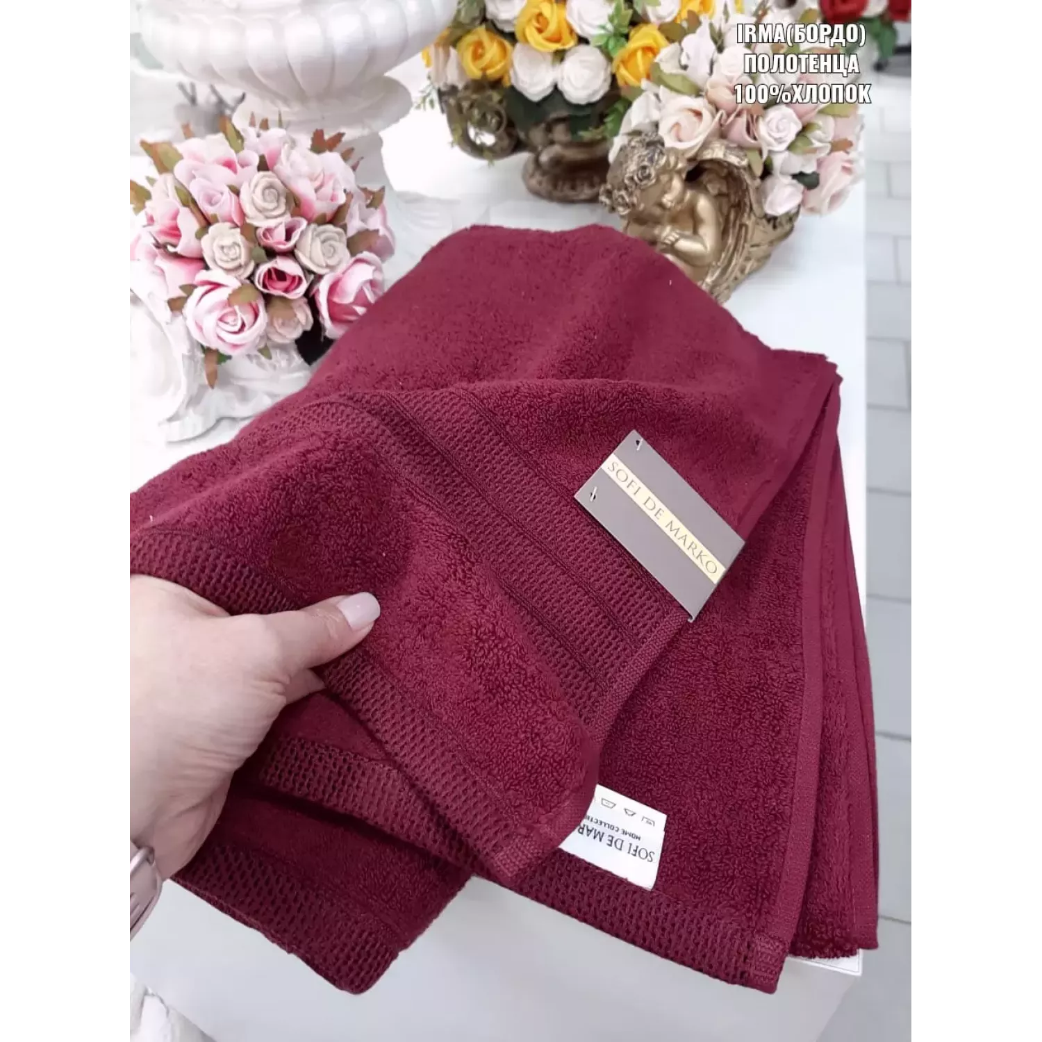 Премиальное лицевое полотенце “Irma” (бордо) имеет стильный дизайн и прекрасно впишется в любой дизайн ванной комнаты!